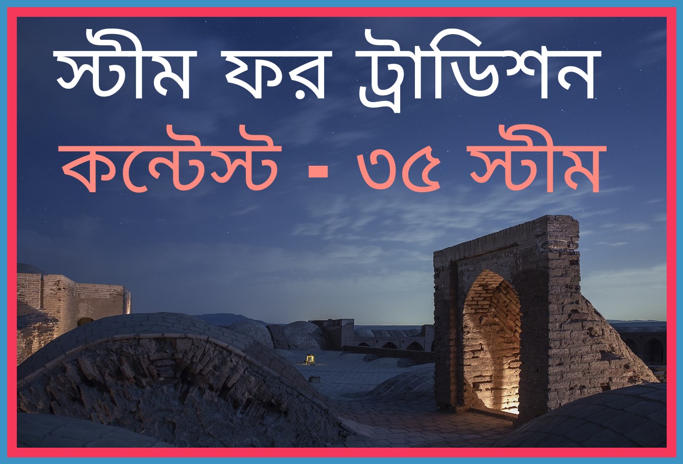 আসসালামু আলাইকুম, প্রিয় ভাই ও বোনেরা, আপনারা সকলে কেমন আছেন? আশা করি সকলে ভালো আছেন। আজ স্টিম ফর ট্রাডিশন কমিউনিটির পক্ষ থেকে একটি সুন্দর ও চমৎকার প্রতিযোগিতার আয়োজন করা হয়েছে। আশা করি সকলে অংশগ্রহণ করার চেষ্টা করবেন।
