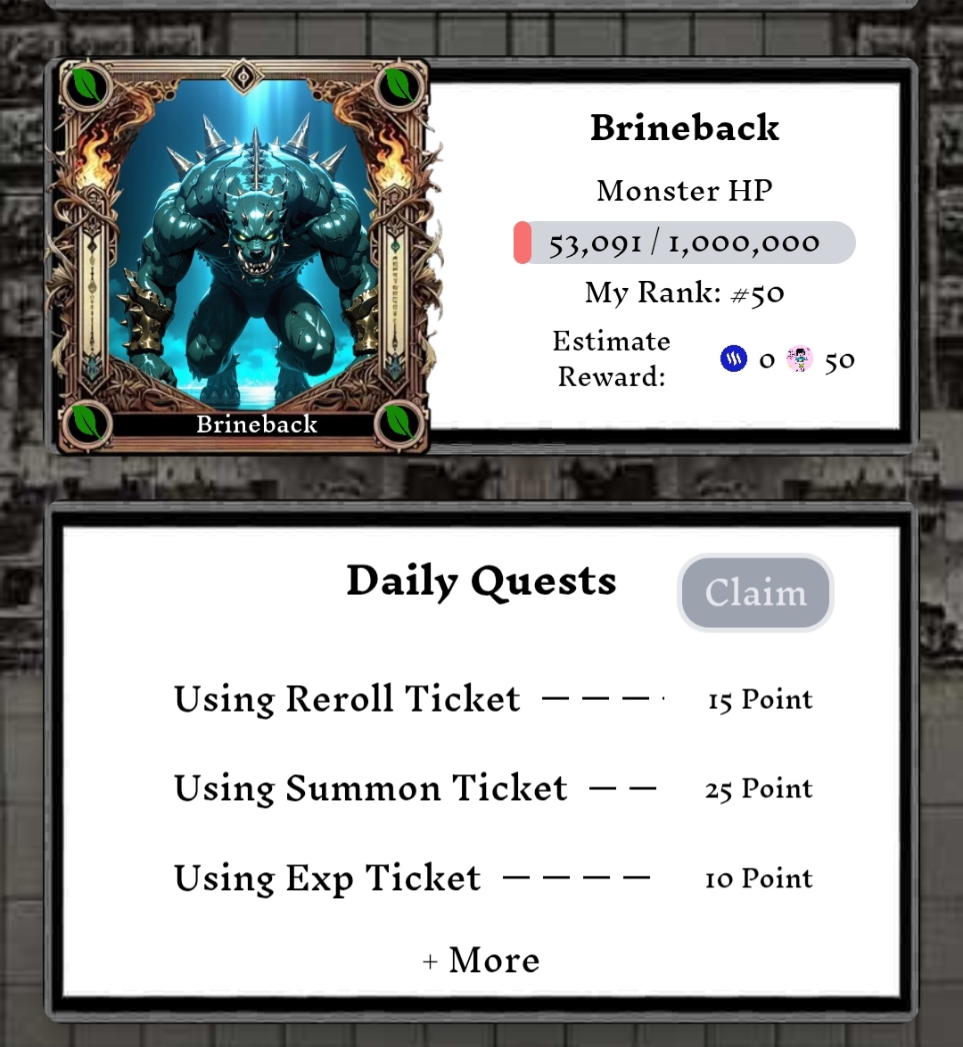 Today I'm ready to face this monster again, just like before. I've attacked people three times and accepted nine cards. However, today I've noticed that the attack and damage have been better than on other days, since this monster's power is very low. Hopefully, in a few days it will disappear completely and a new event will arrive with attractive prizes for those who have the most players after the leader.