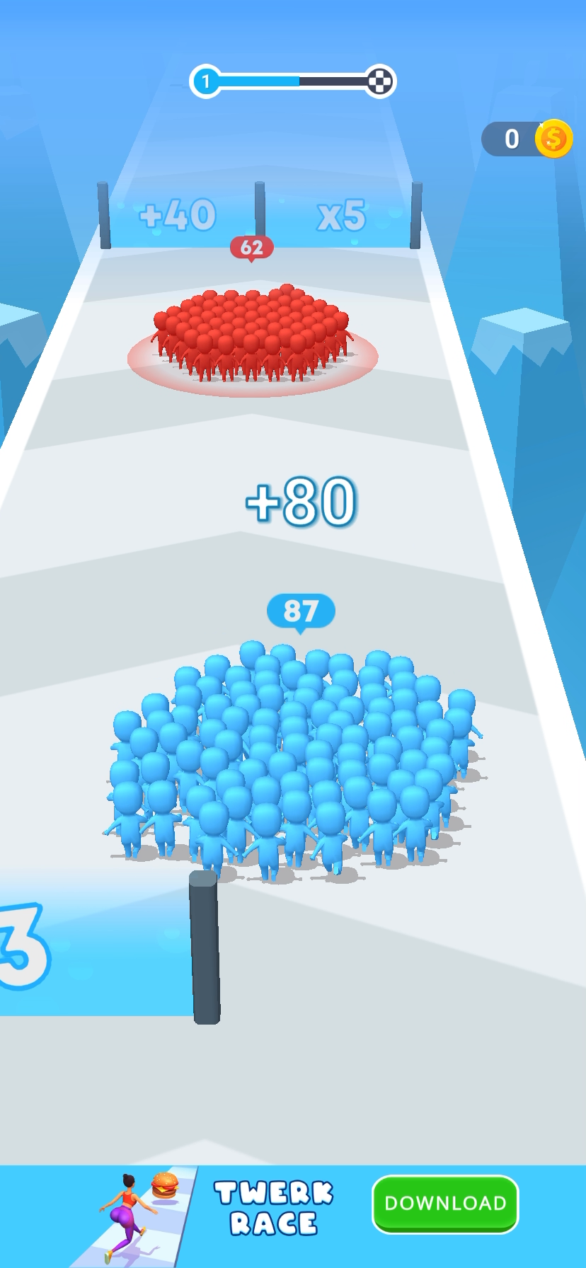 Like I always do i will download different offline games and practice it….same thing happen today i downloaded this game and I decided to play it the name of the game is count master it may look quite easy but trust me I believe the more I go higher in level tge tougher it becomes so let dive into what the game is all about so basically the main thing in this game is that I will start with one player will moving i will come across a limit where they will give me and option og either addition or multiplication for instance i choose multiplication the number of character I’m with will multiply by tge figure written on the multiplication same applys with additional so I will have an opportunity to carry as much players I can before it gets to a point where by i will have to face another set of red colored character so they do it by elimination method if my character aint up to the red ones then I loose automatically but if my character are more than the red ones i
