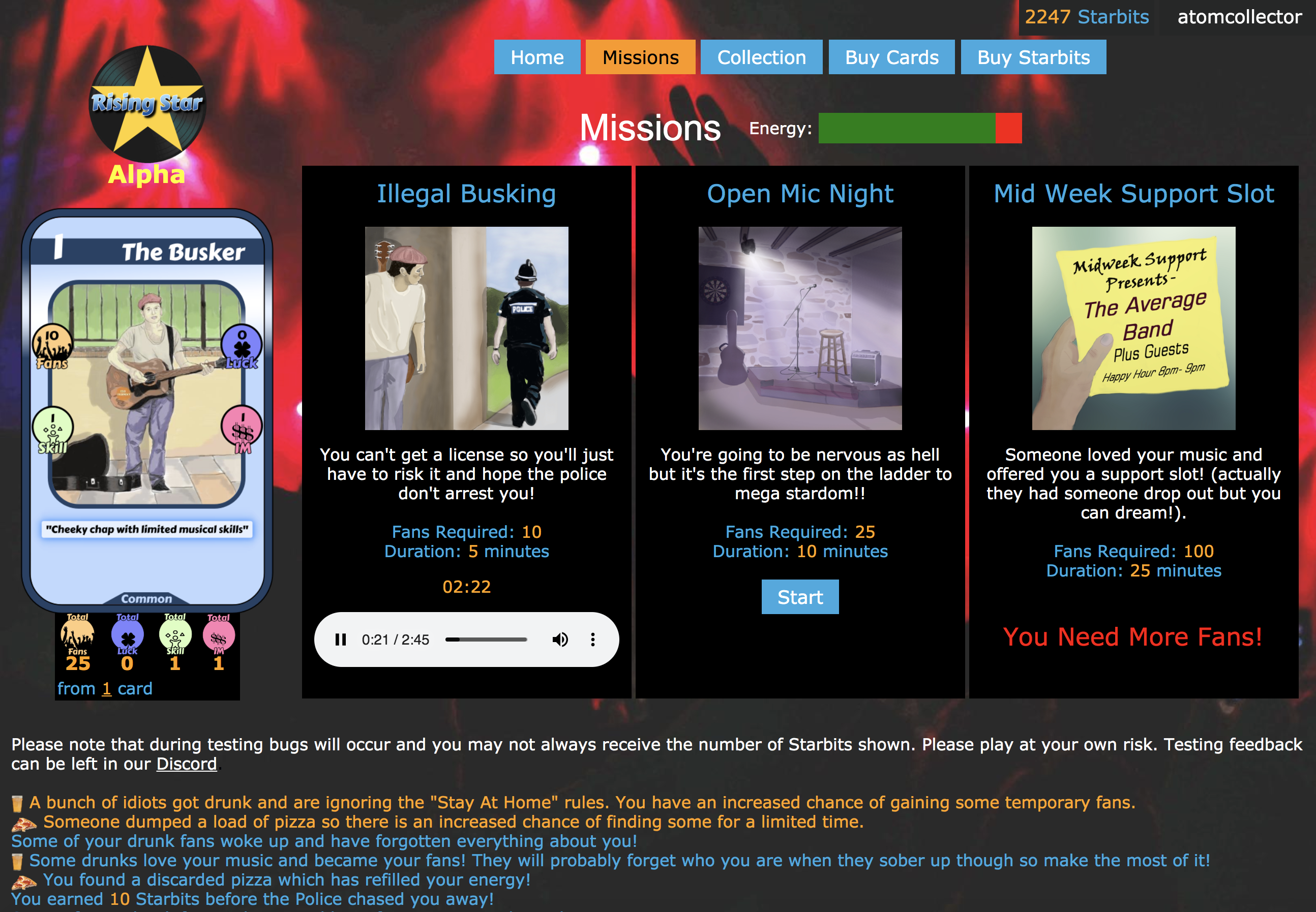 You will also notice a small bar at the bottom of the screen which will soon feature "Rising Star Radio", an in build streaming service featuring music from our fantastic community of independent musicians at @atomcollector.