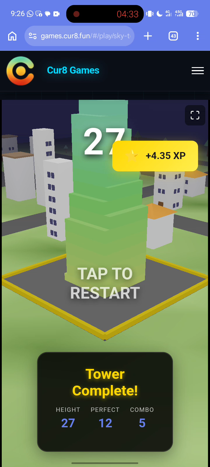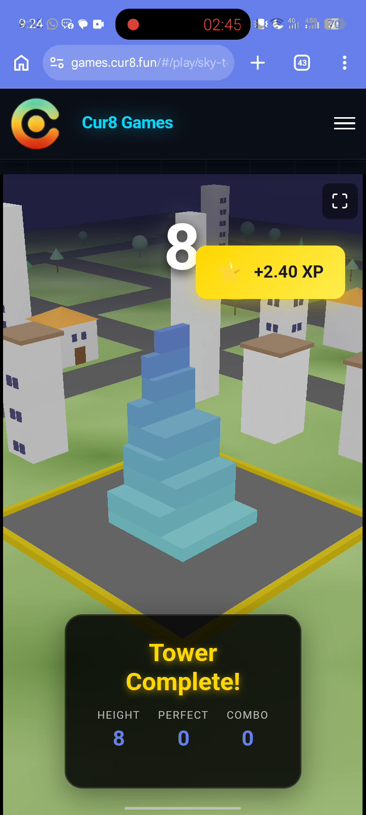 Tip: Perfect placements matter more than just building high. A shorter tower with many perfects can earn more XP than a tall tower with crooked blocks.
