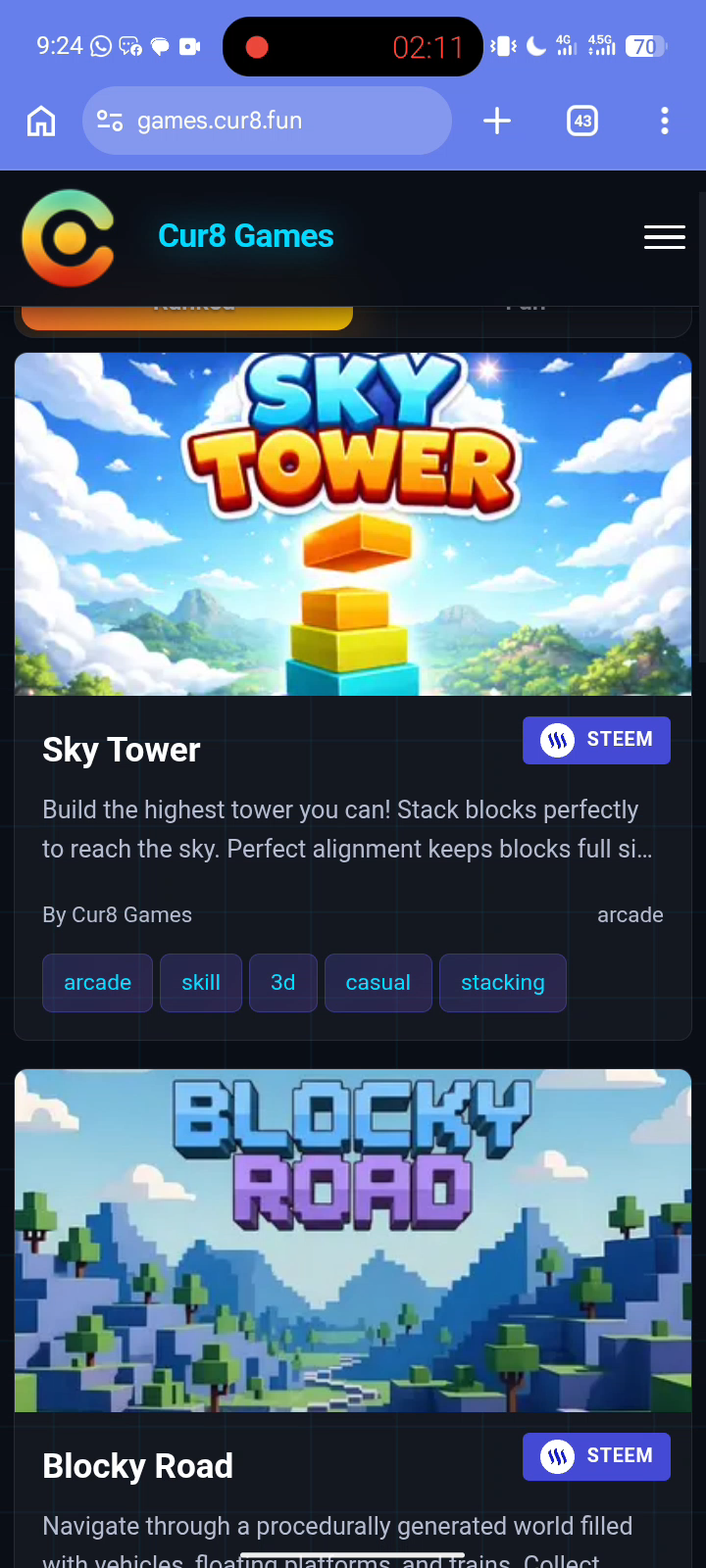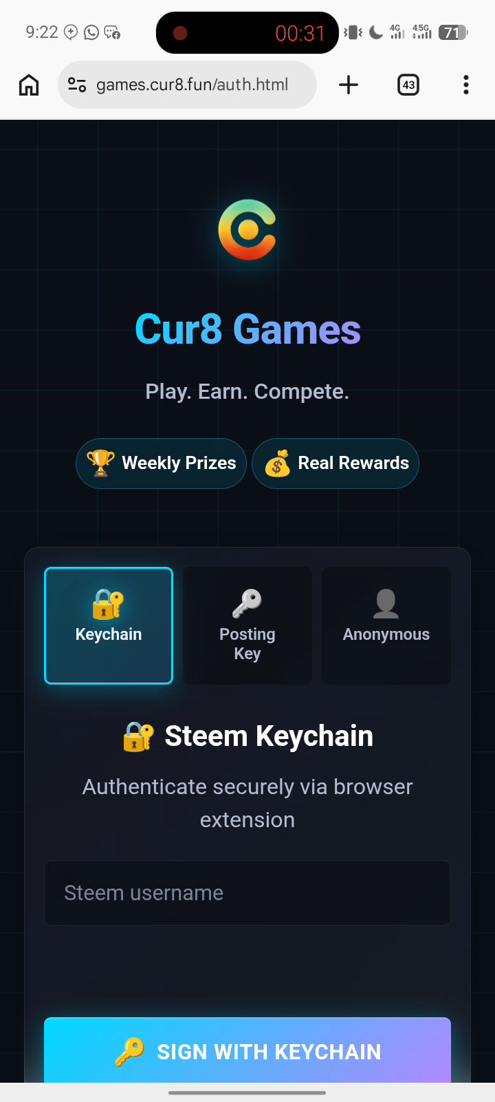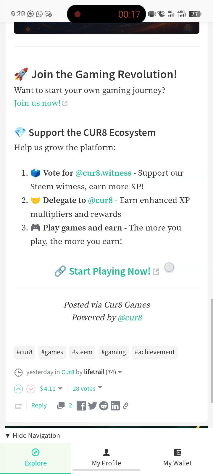 Cur8 Games is a fun way to engage with the Steem blockchain beyond posting and commenting. It turns gaming time into productive time by you playing competing and you earning