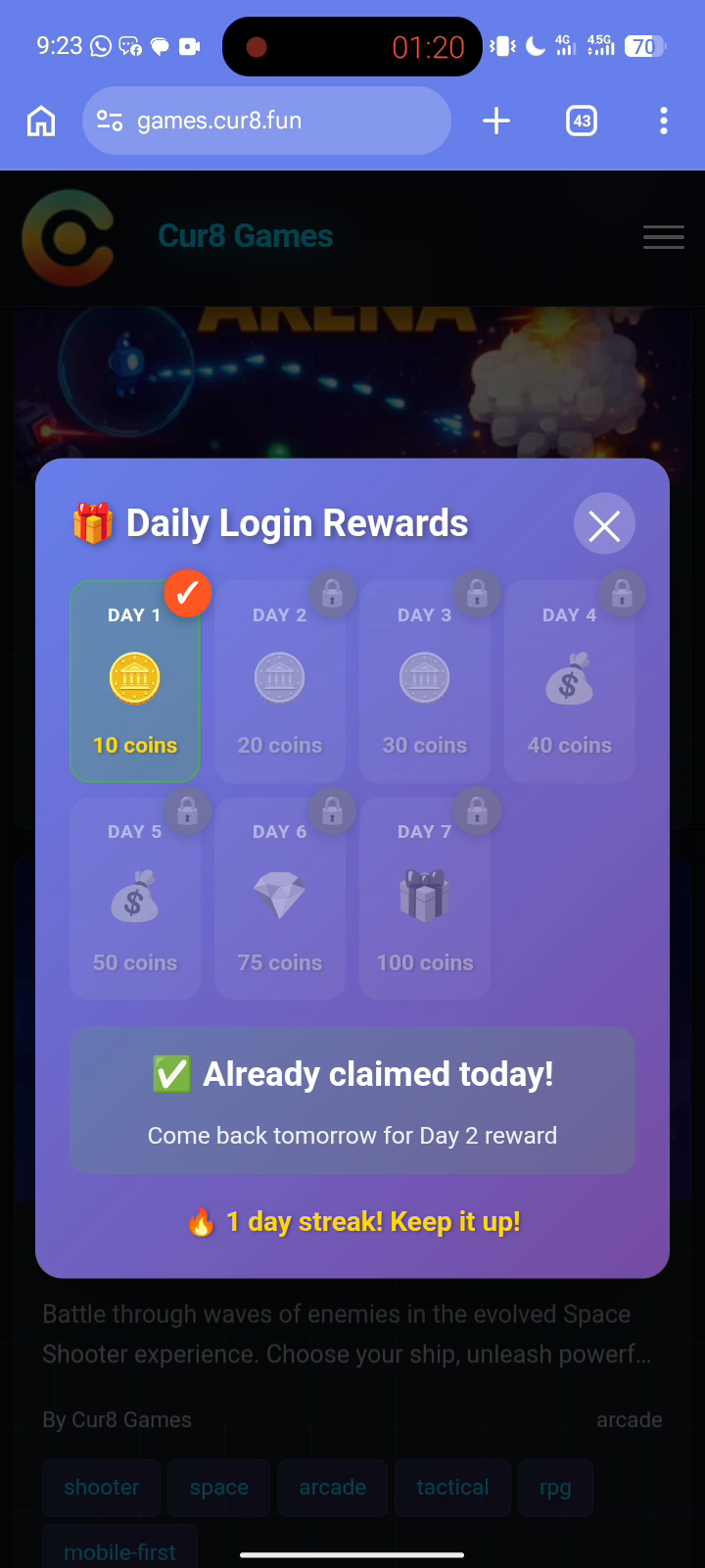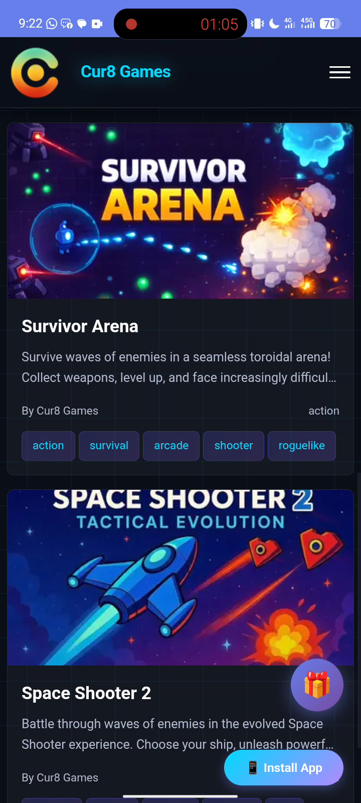 Cur8 offers several arcade-style games. Here are the ones I tried: