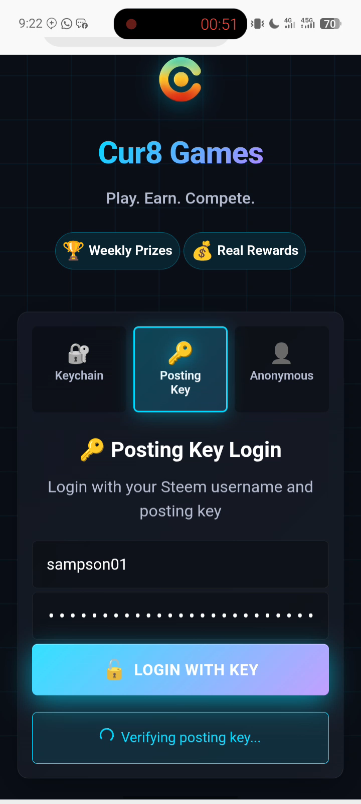 Logging in was simple. I used my Steem username and posting key no need to create a new account or remember another password. The platform verified my key and I was in.