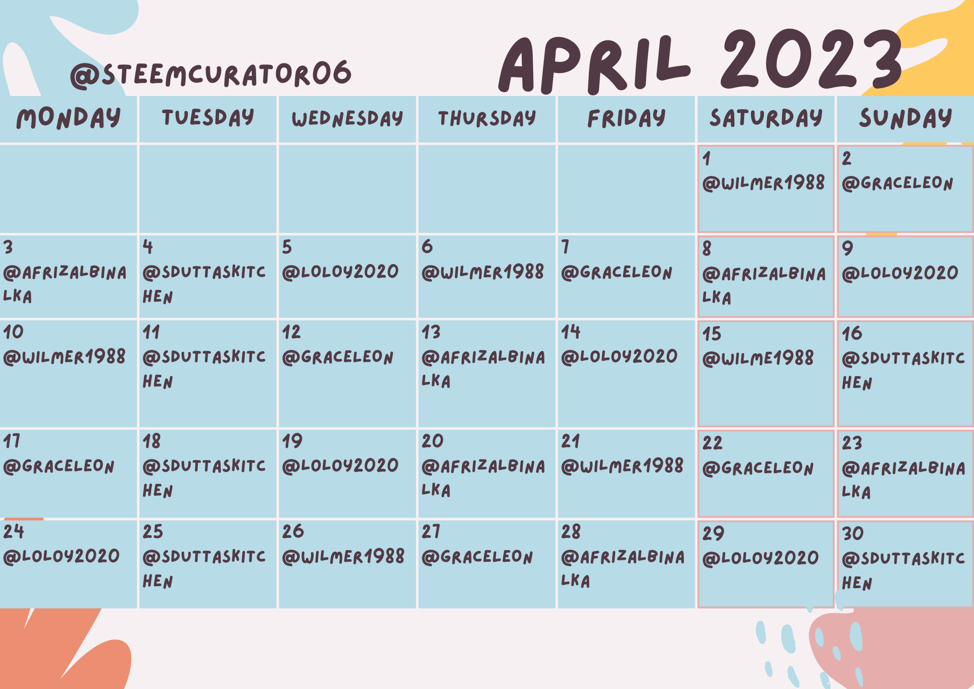 Untuk melaksanakan proses kurasi ini secara efisien, kami telah menugaskan tanggung jawab mingguan kepada lima anggota tim sebagai berikut.