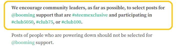 But Steemit team is still focusing on the club tags, #club5050, #club75, #club100 and club members are selected for the daily Booming support.