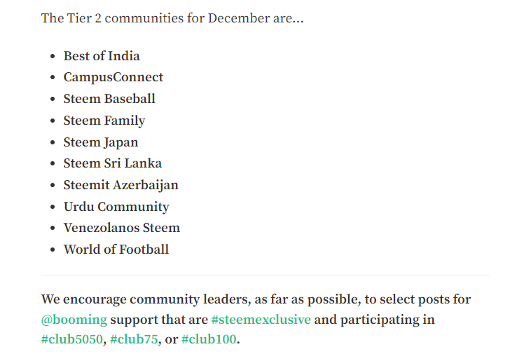 Steemit team is not running the "Communities of the Month Support Program" in December but the are still doing the Booming support 👇