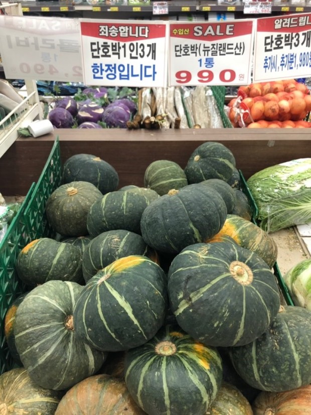 僕は甘い方のかぼちゃが好きです。韓国には甘くない黄色いカボチャもありますね。