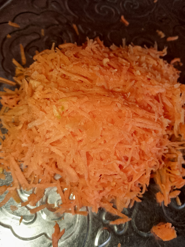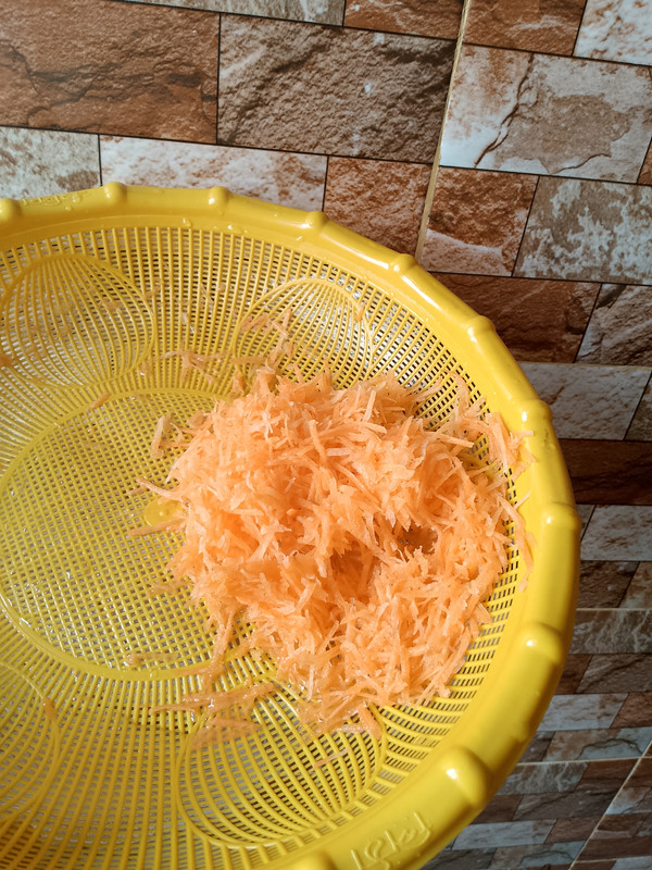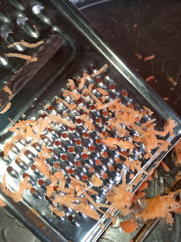 First, I took two small-sized carrots, washed them thoroughly with clean water, and then grated them finely using a grater.