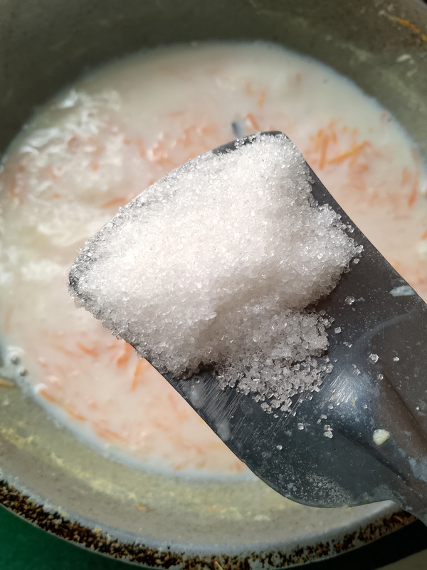After boiling for a while, I removed the lid to check if the carrots were cooked properly. When the carrots were almost cooked, I added sugar according to taste. I adjusted the sugar based on my preference, but you can add more or less as per your taste. However, for children or elderly people, it is better to keep the sweetness mild.