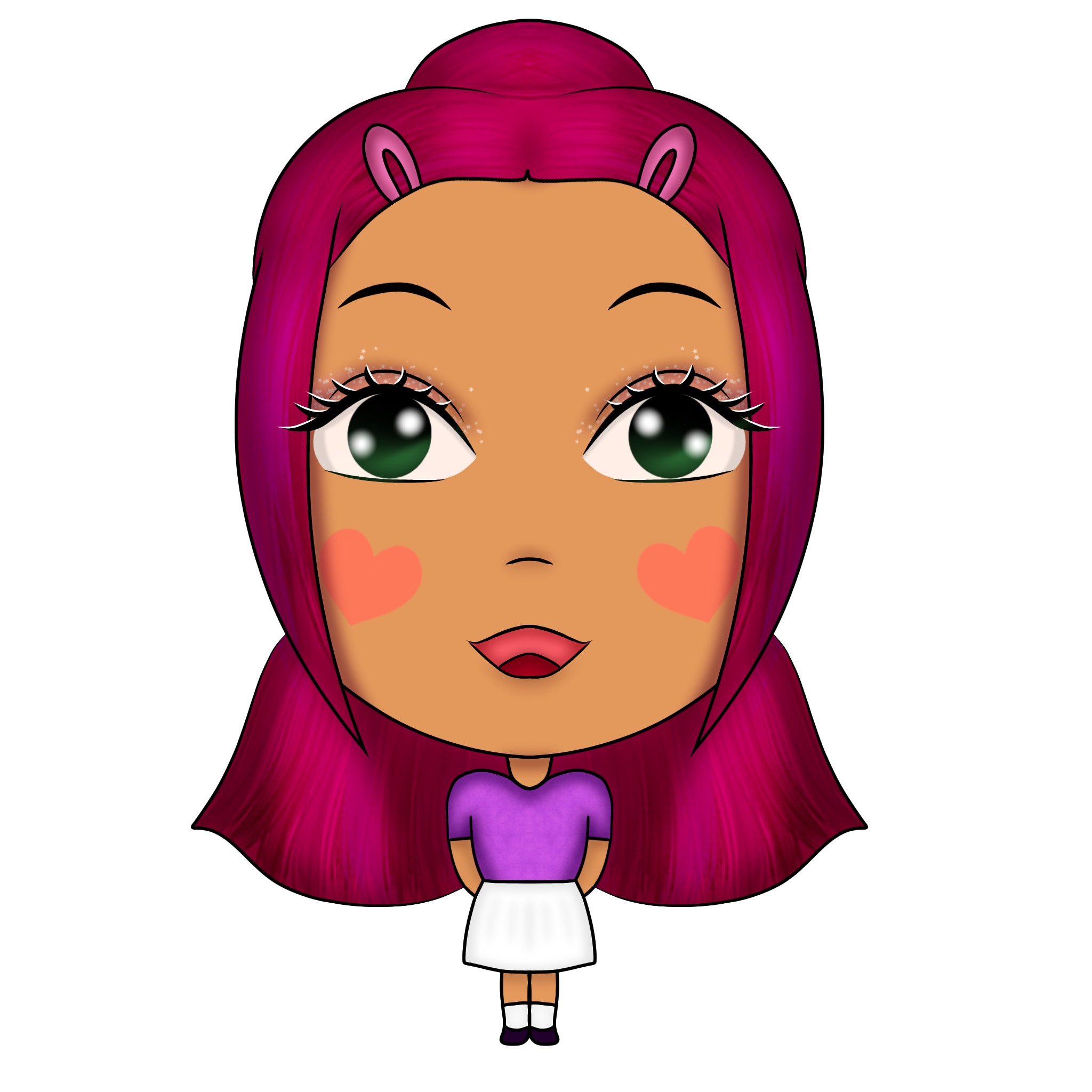 6. Finalmente jugué con la herramienta de arrastrar para darle otra forma al rostro, un poco más redonda para que luciera más tierna. Y con los filtros le dí más saturación al dibujo. ¡Listoooo! 💜