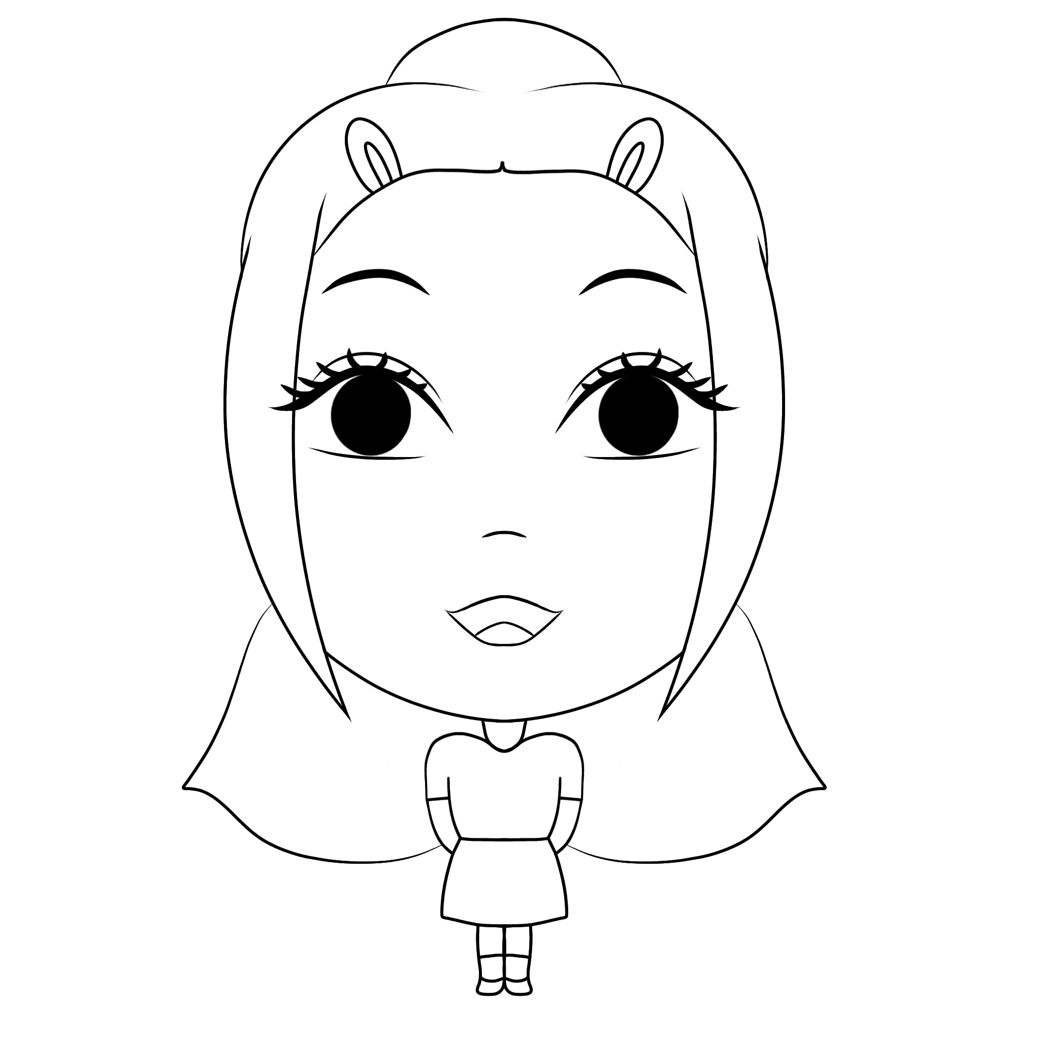 1. En un lienzo blanco y cuadrado dibujé el boceto del chibi. Para este personaje, hice una pequeña niña con grandes ojos, jajaja.