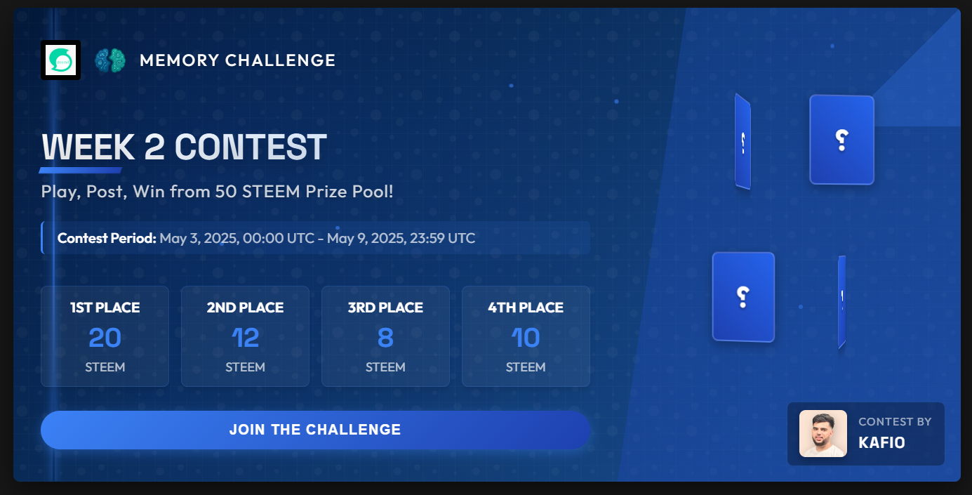 I am thrilled to announce Week 2 of the Steem Memory Game Contest, with a bigger prize pool of 50 STEEM to reward players and creators in the community!