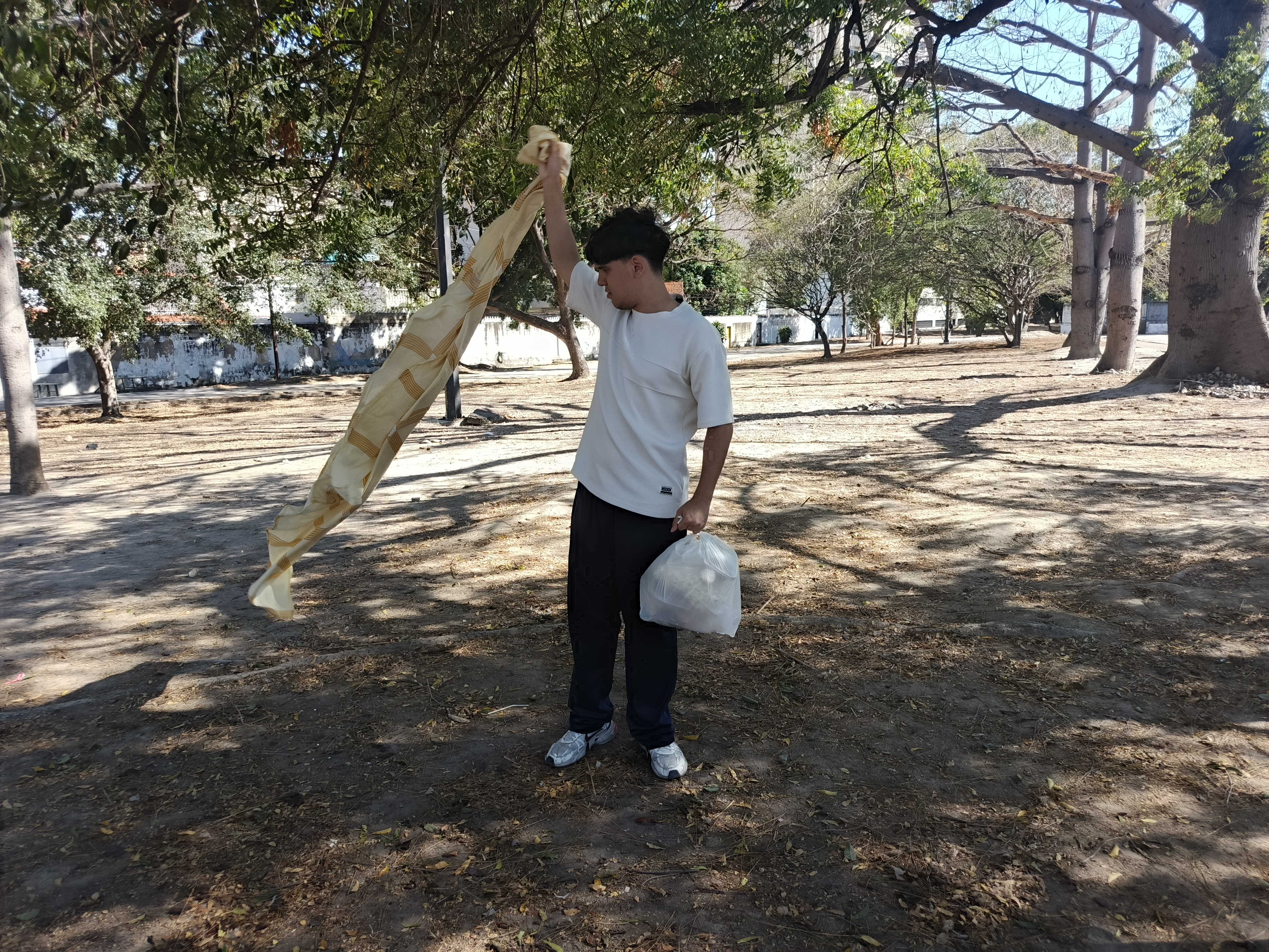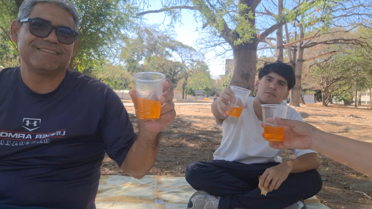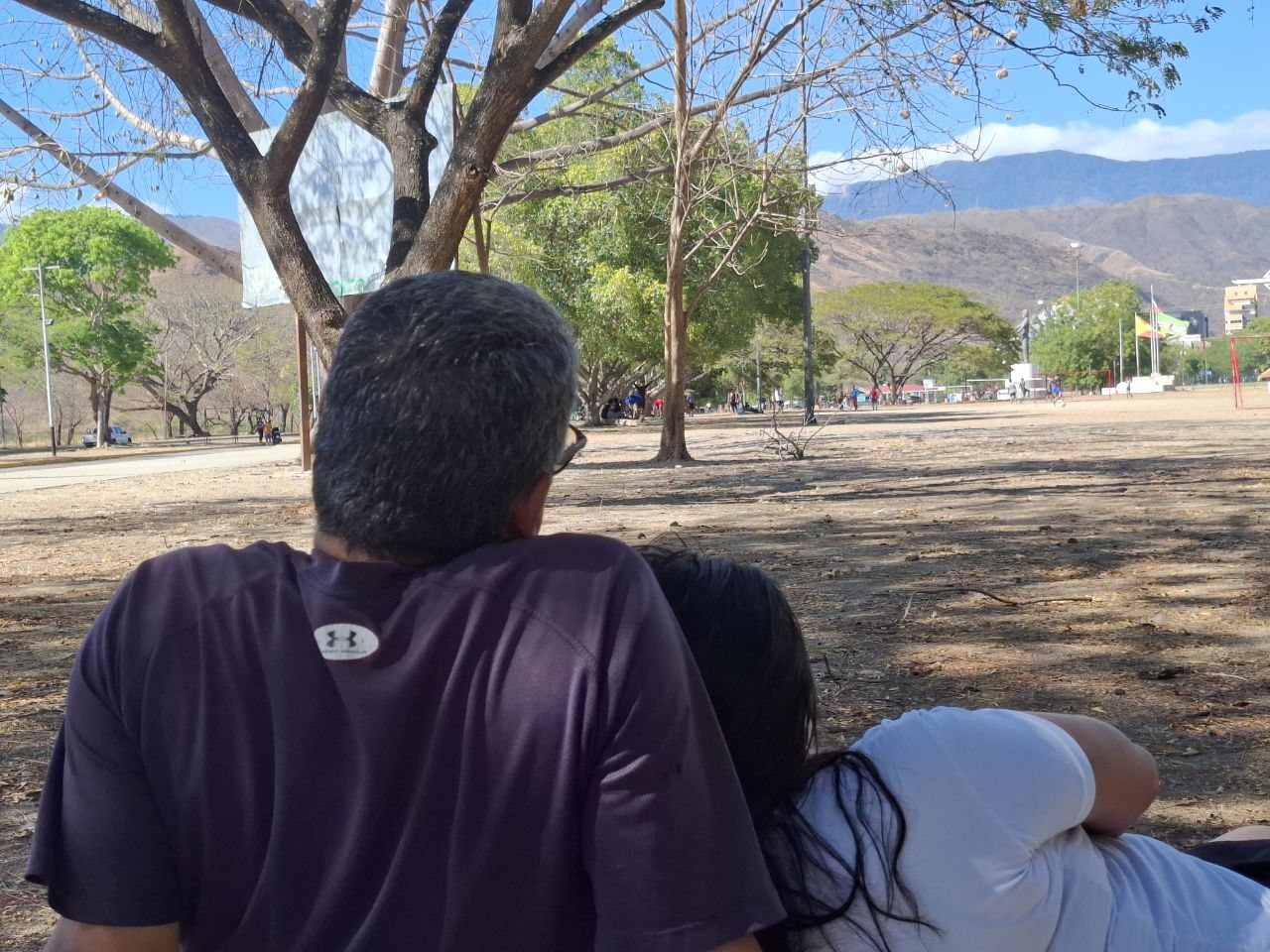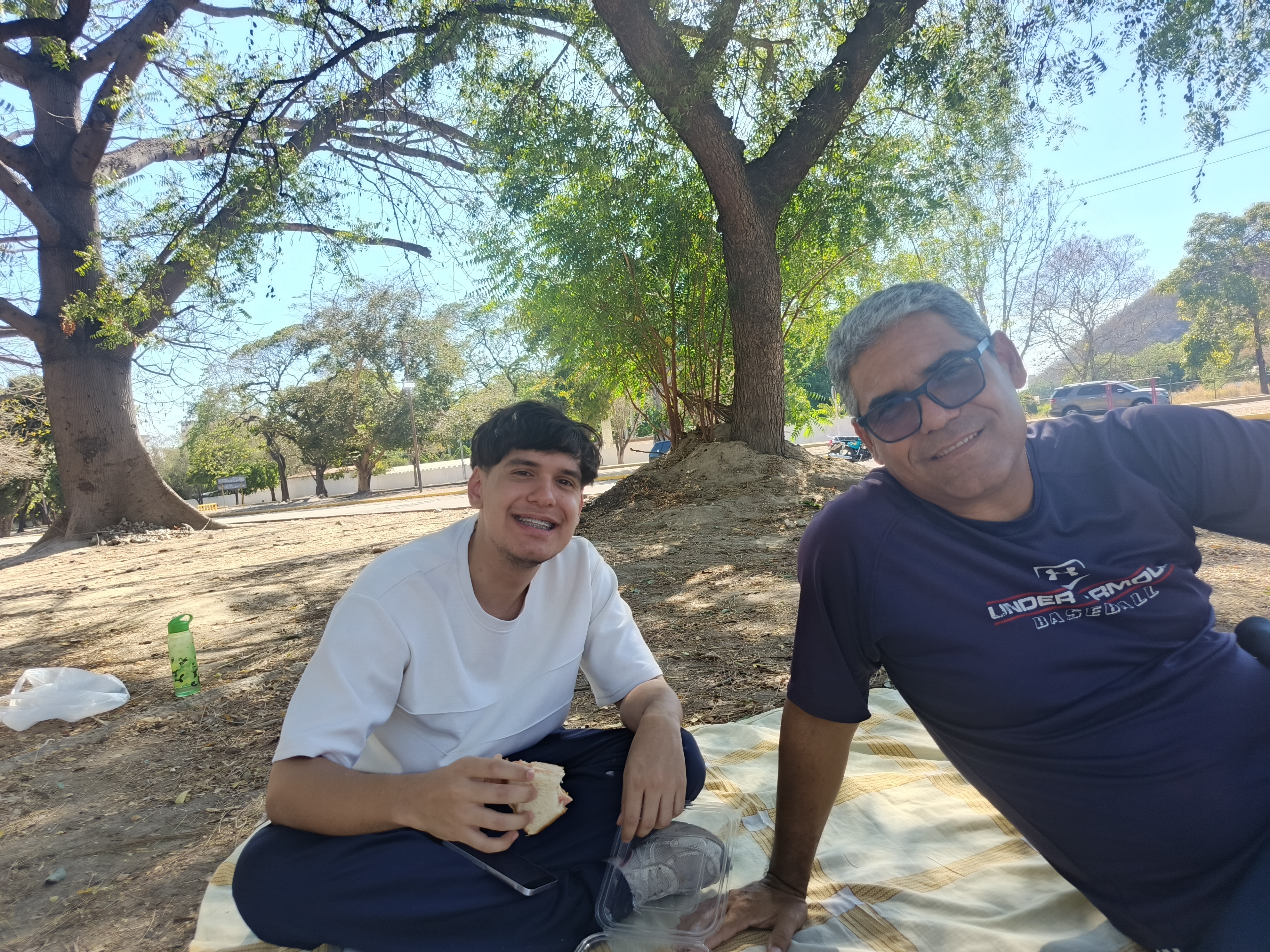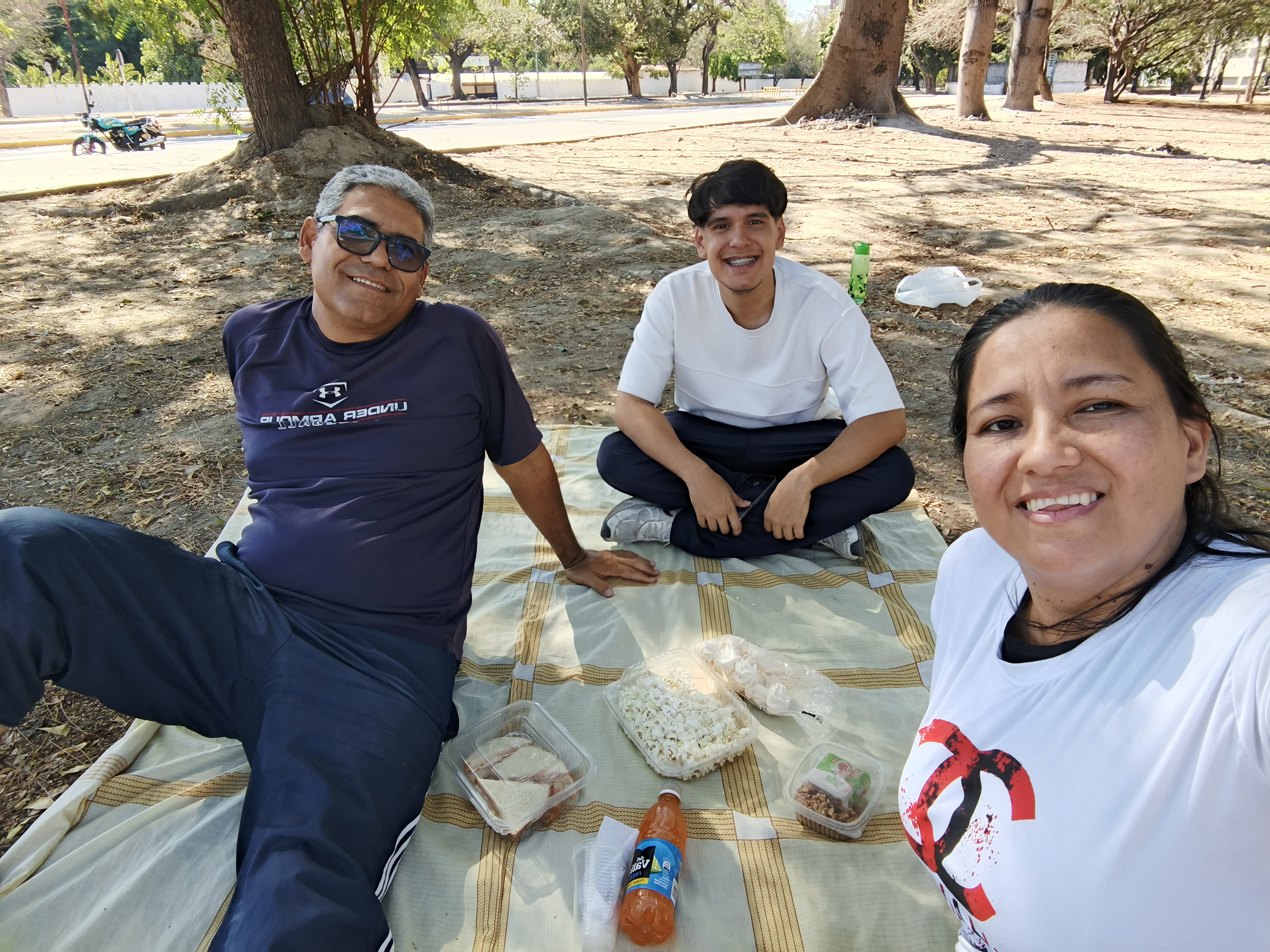 Llegando al parque preparamos una sábana para sentarnos cómodos en un espacio bajo la sobra de árbol, un lugar donde se respira aire puro, y se está en desconexión total, además que había unos muchachos jugando fútbol y podamos verlos cómodamente.