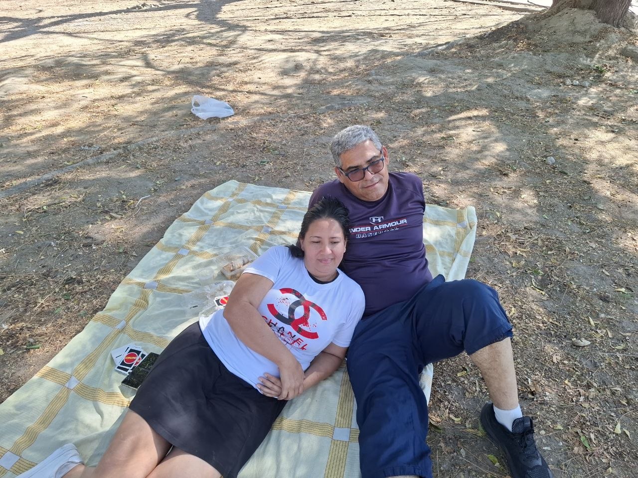 Mi papá y mi mamá ellos estaban súper relajados, después de jugar se acostaron en la manta y casi que se quedan dormidos estaban muy tranquilos viendo a los muchachos jugar fútbol.