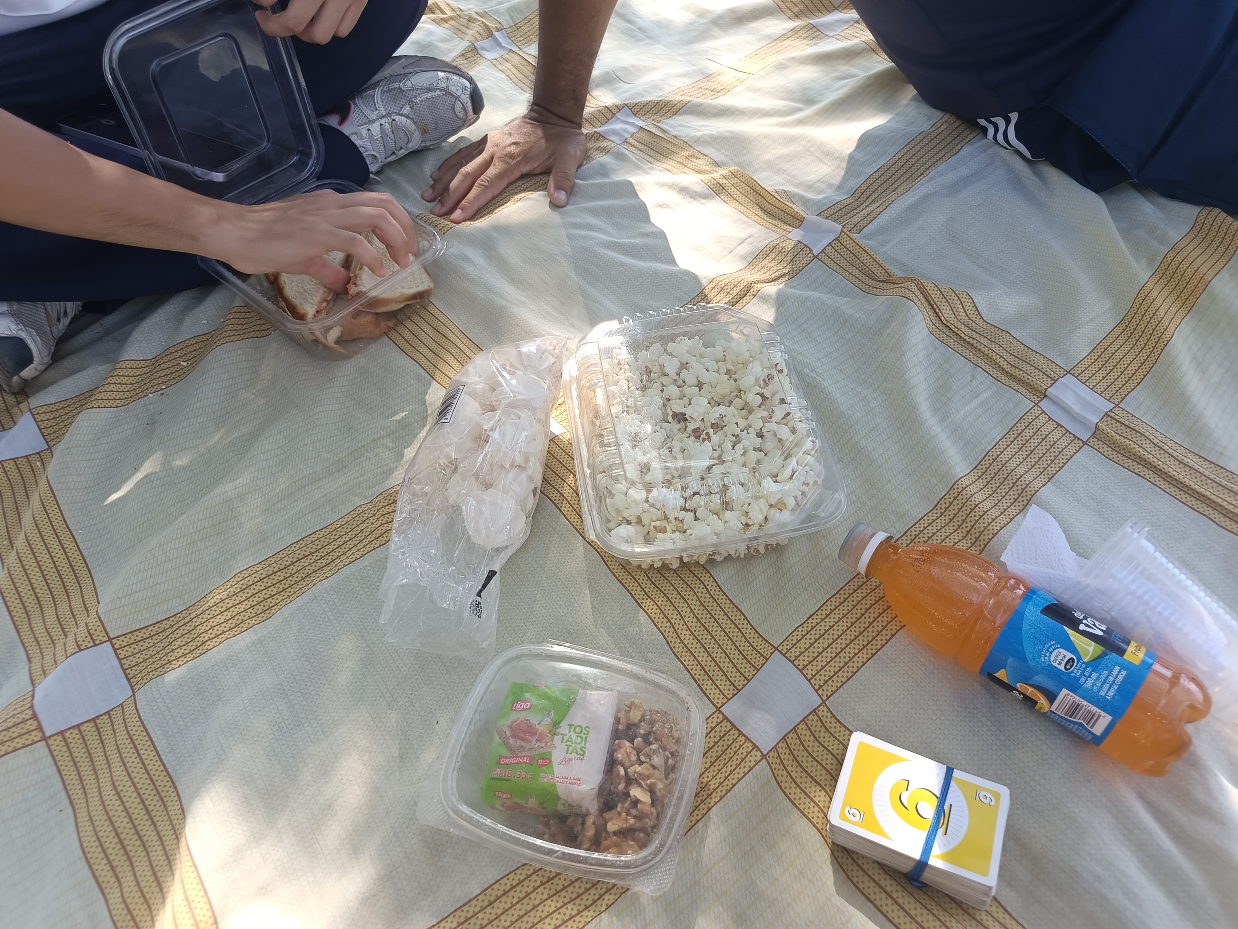 También llevé mis cartas UNO para una partida, nos gusta mucho jugar cartas y en un picnic es el juego perfecto, nos reímos, y está vez el ganador fue mi papá, fue estratégico y logró llevarse dos partidas de tres, así que fue el ganador del día.