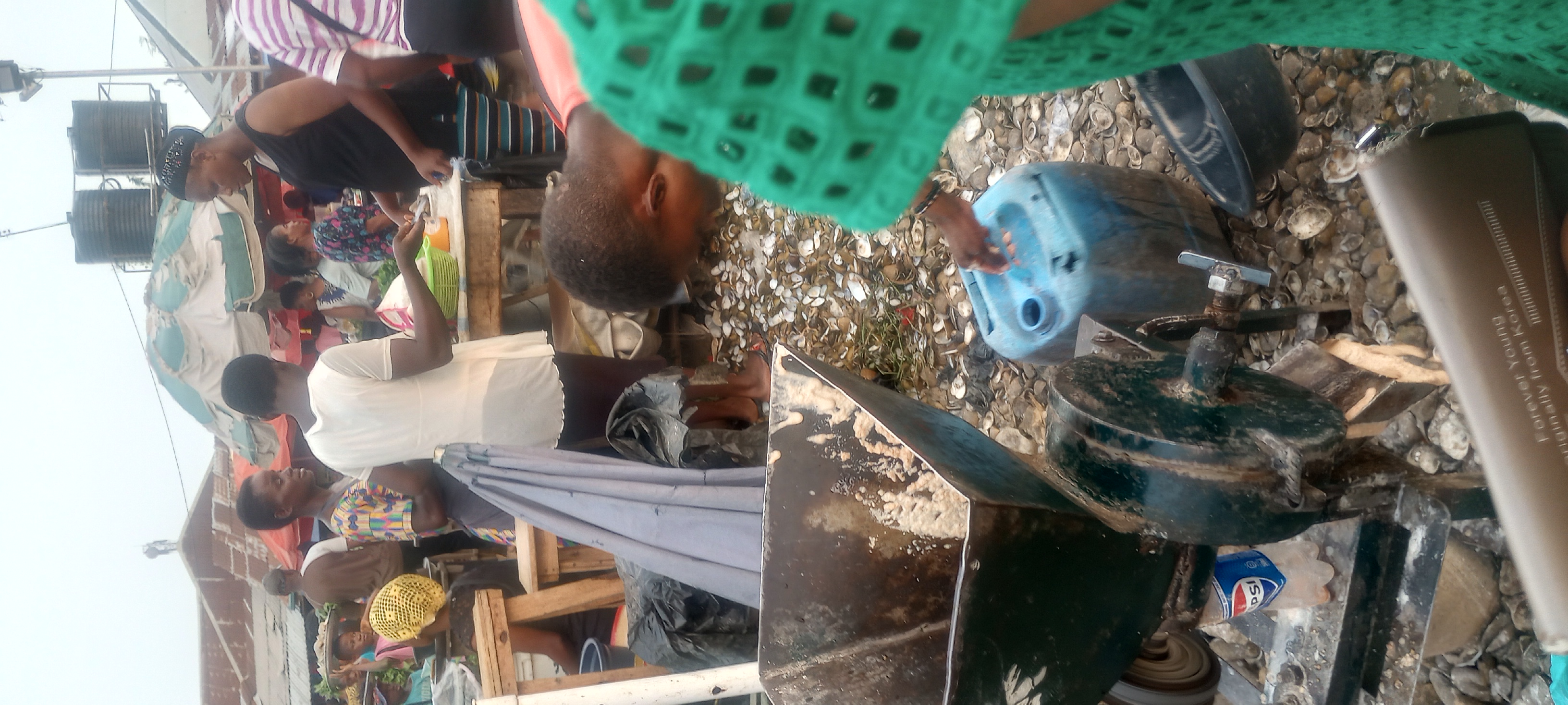 When we grind foods in a very dirty market like the one in the second picture, there is a chance of germs getting into the food. This is food poisoning.