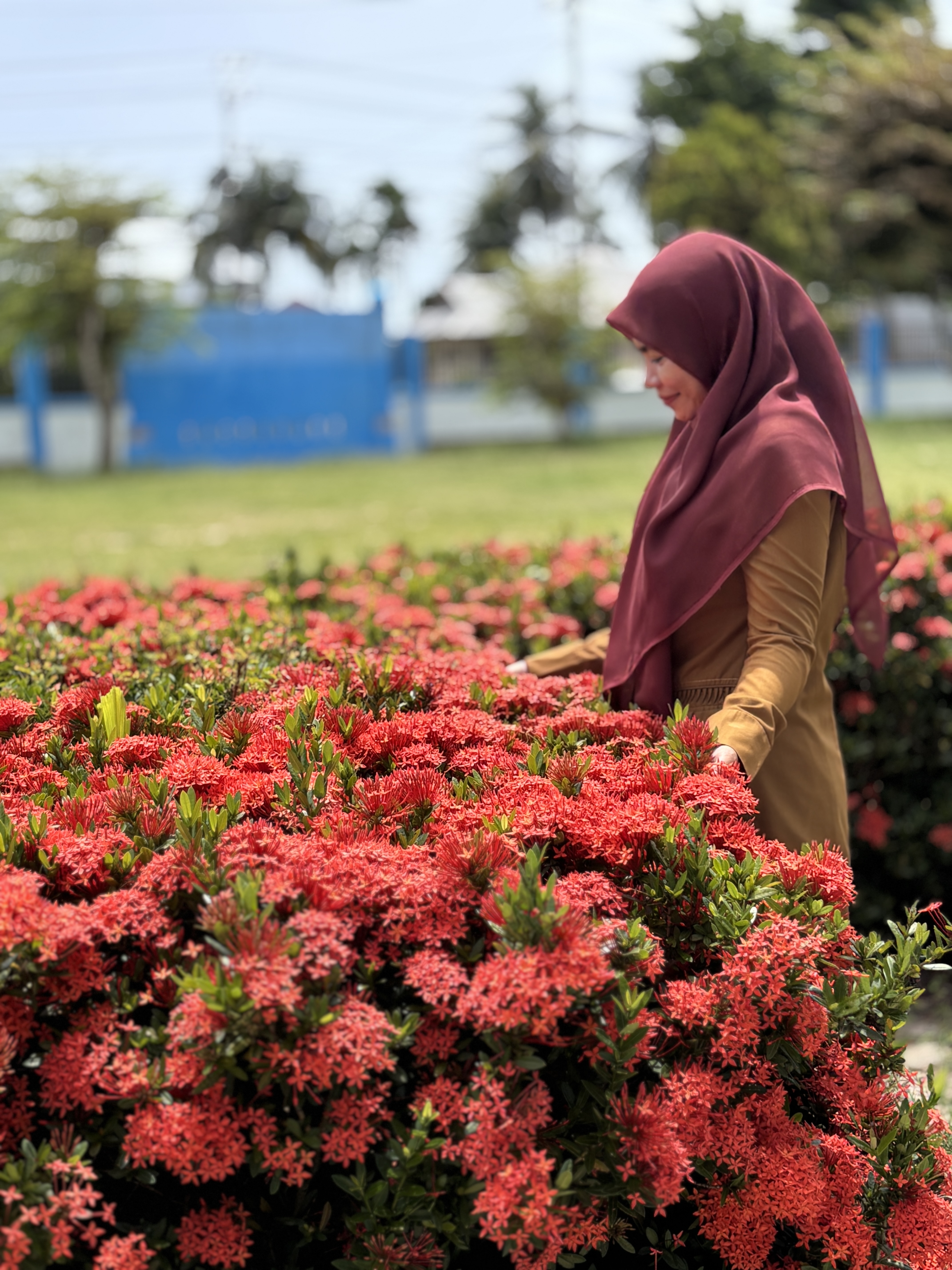 Sebelum berangkat mengajar menuju ke ruangan kelas aku segera mengajak.rekan guru dek @syidah01 untuk mengabadikan moment indah dan seru diriku bersama bunga-bunga yang sedang bermekaran. Betapa indahnya ciptaan tuhan.