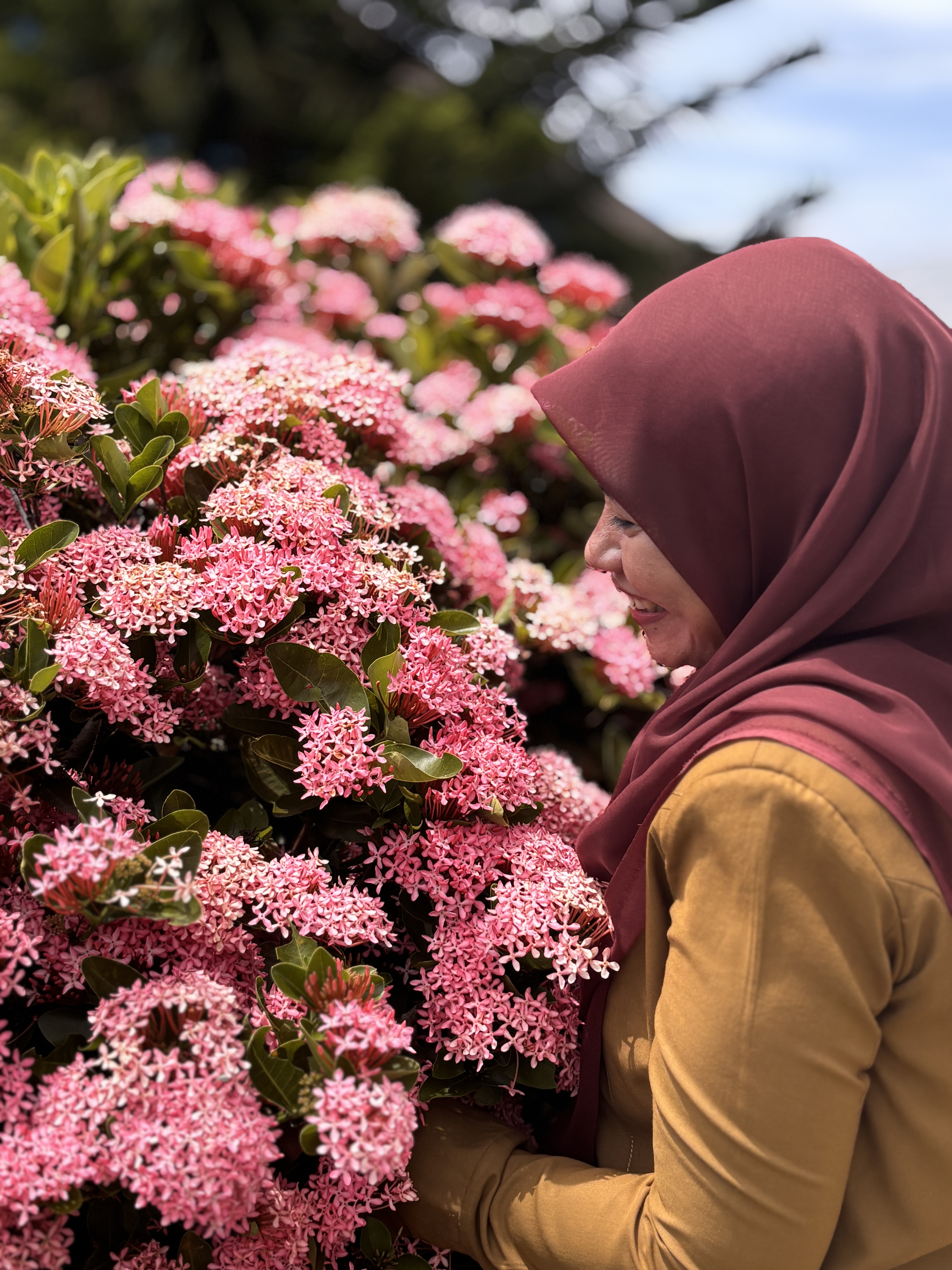Aku yang memang mencintai suasana alam termasuk tanaman merasakan sensasi bahagia dan nyaman saat memandang serta menyentuh langsung tanaman yang sedang berbunga mekar dengan cantiknya. Aku seperti sedang merecharge diriku melalui alam.