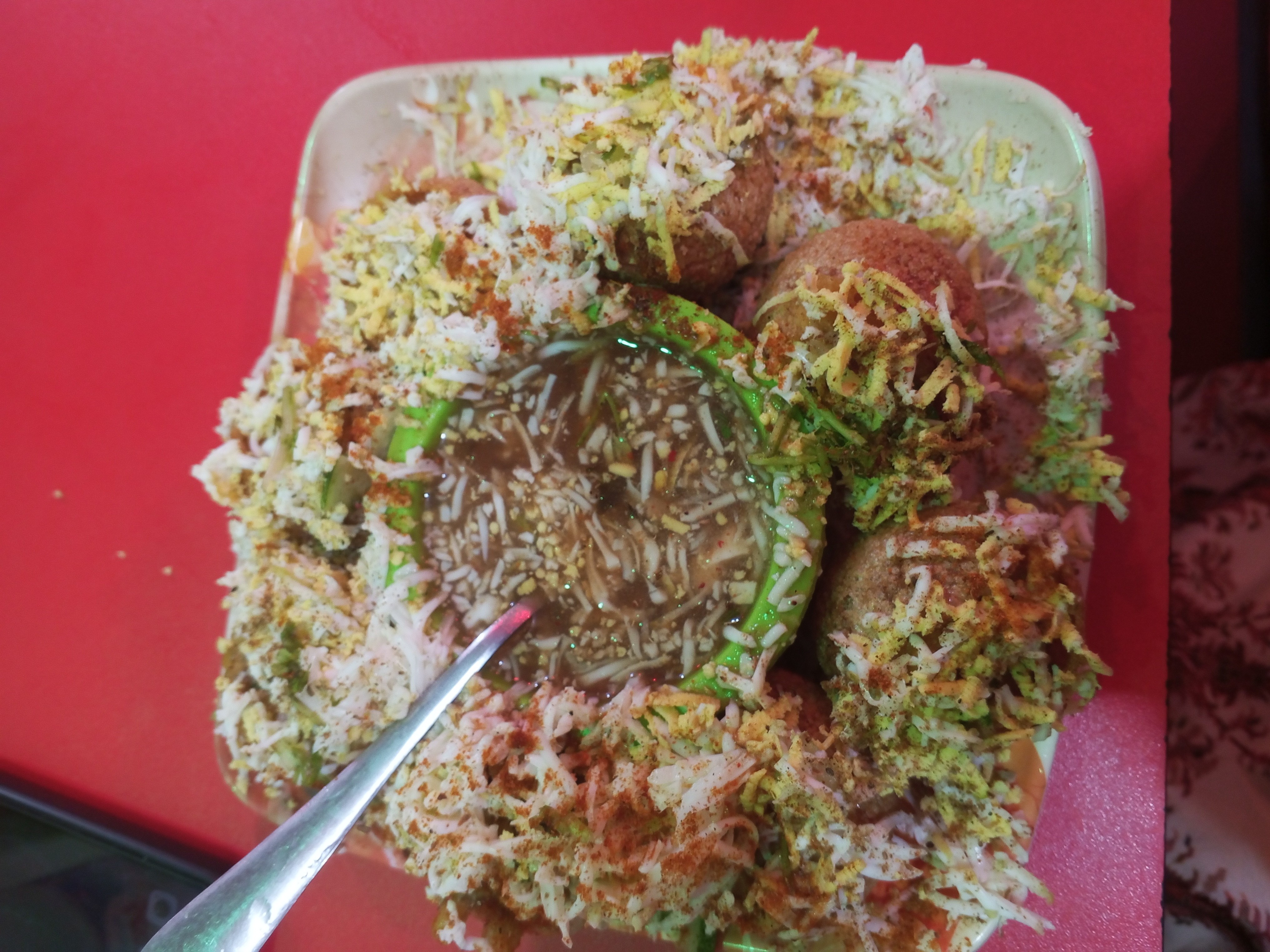 I always like Fuchka a lot, so after we went, I ordered Dim Fuchka. We sat for about half an hour after ordering. It took that much time to get the Fuchka ready. So we sat and took some pictures of Fuchka House. I really liked the Fuchka House seats. The walls are decorated with different types of flowers. Seeing them, people's minds become attractive. The attraction of going there and eating Fuchka increases. A lot of crowd gathers while sitting. Many people are there to eat fuchka. My friend and I had been planning for a long time to eat fuchka, so we went out today after finishing college. The fuchka house is decorated so beautifully that it captivates my mind. I took some pictures there and ate fuchka. After eating our fuchka, we left.