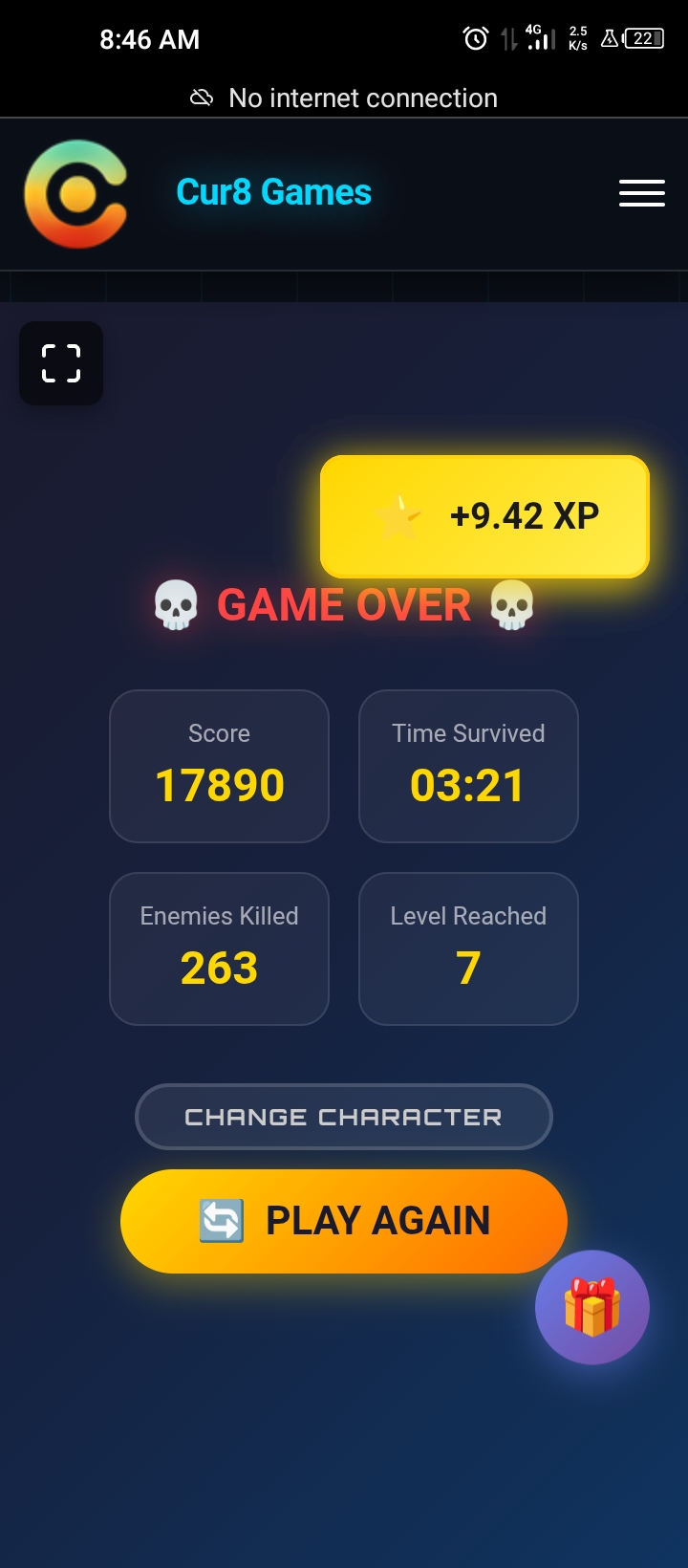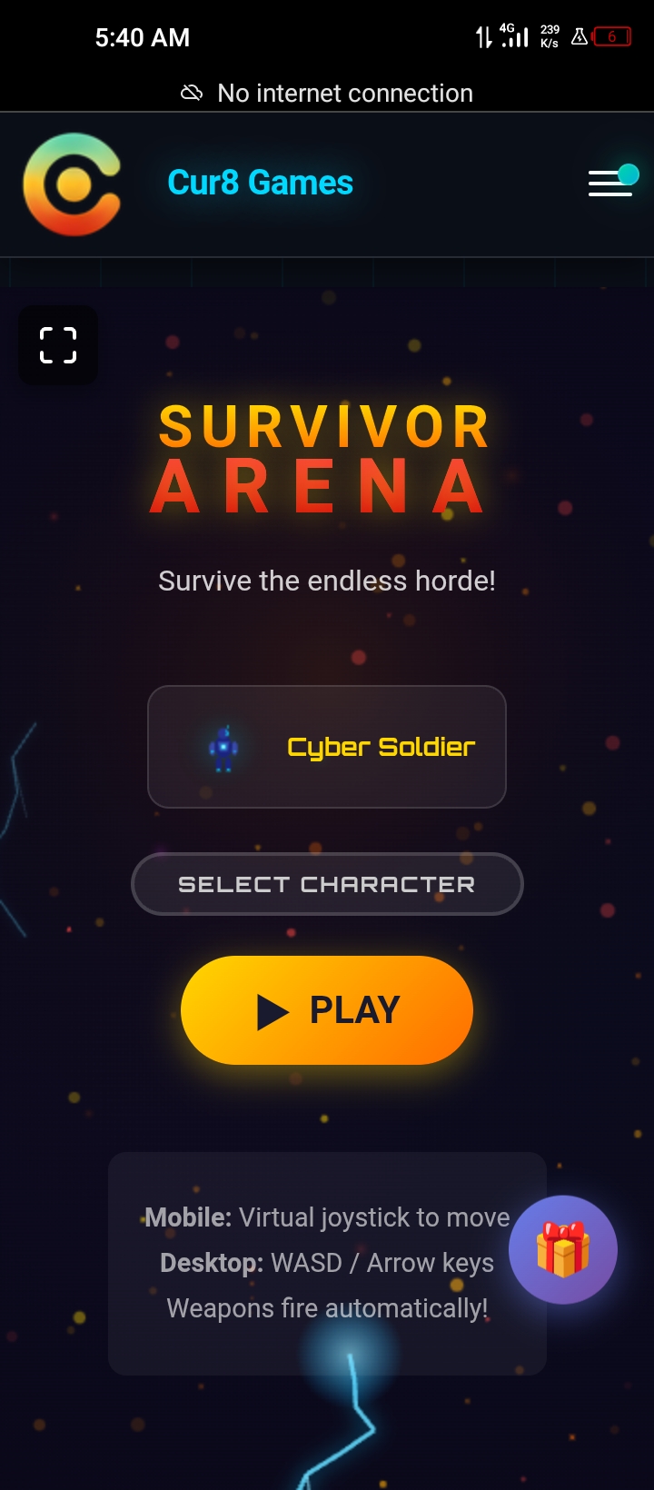 This game basically has to do with shooting other aliens with cyber soldiers, while moving about to avoid the monsters, because most of them are explosive, and getting closer may reduce our health, killing monsters can give you medkits and other coins, as u take them u upgrade level by leve, and as you upgrade it new guns with higher powers are also added, which is also very cool, we have the rocket launchers, boomerangs and various weapons, which were really cool. I played the game and lasted really long, I lasted for 3 minutes and 21 seconds, I killed 273 aliens and my score was 17890....