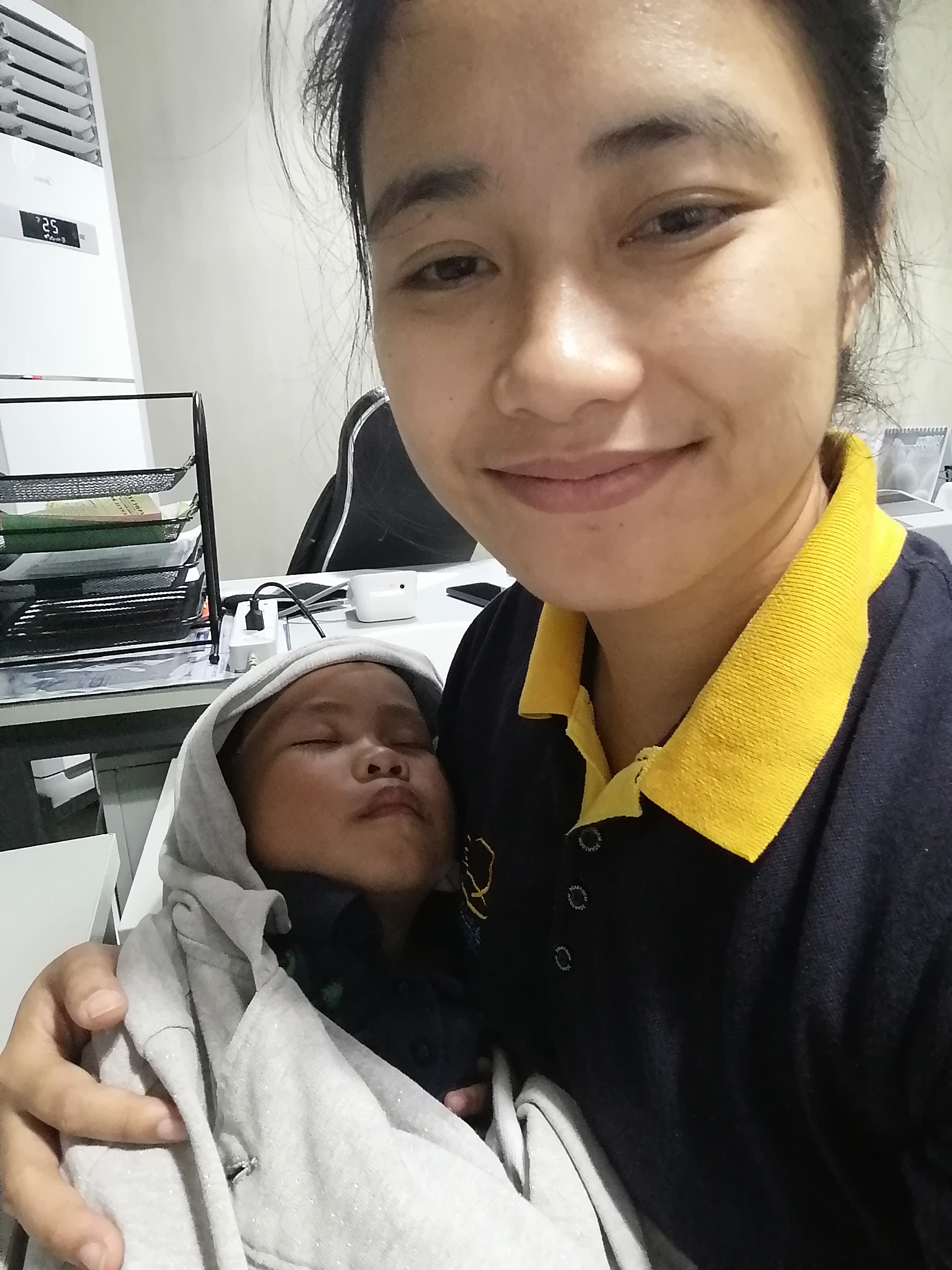 He was sleepy already at noon so I asked him to go to sleep and give him breast milk. He slept but never wanted me to put him down so we stayed like this.
