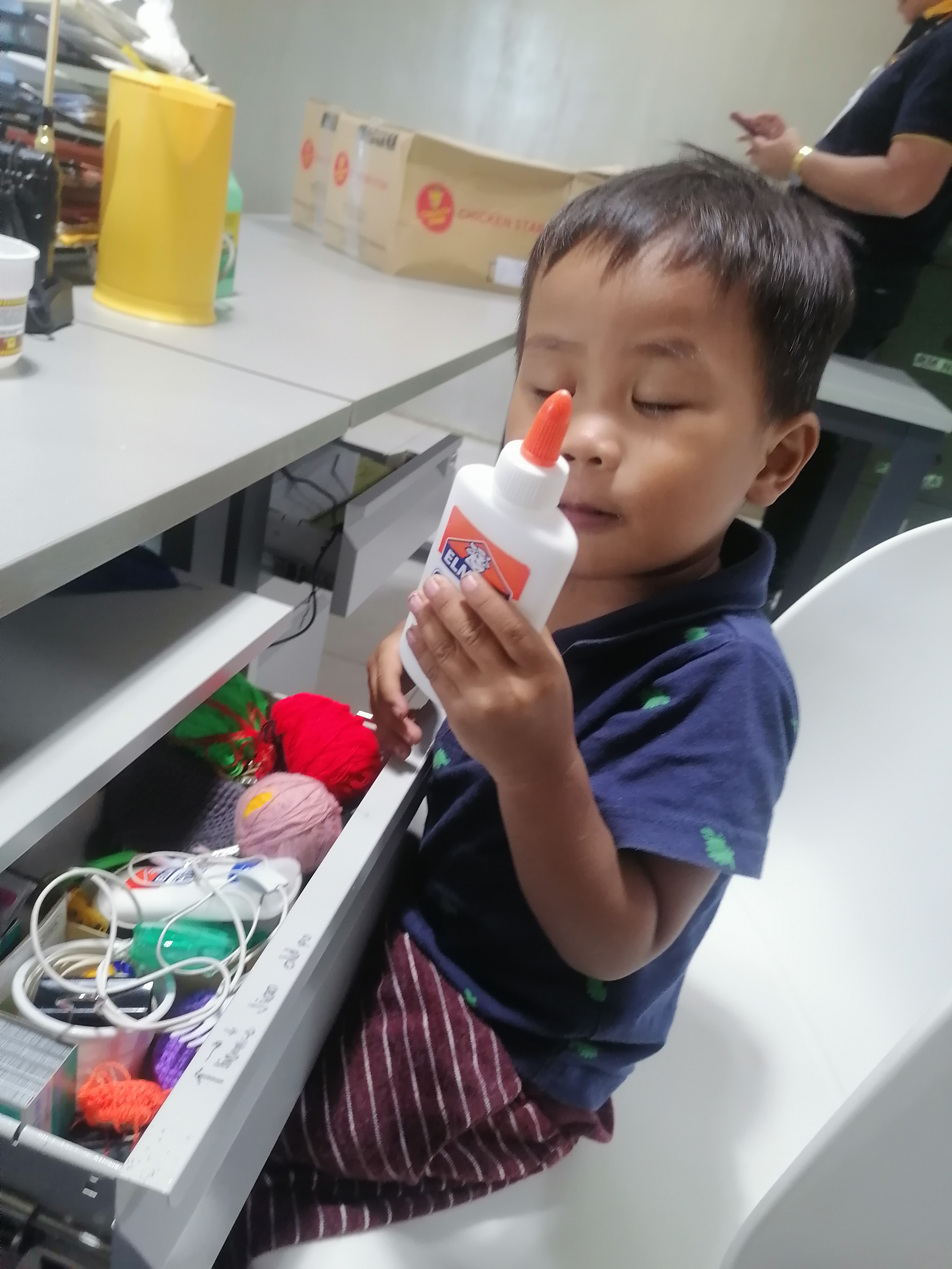 Meanwhile, Czak is busy checking on what's inside of my drawer and he is asking " Mama, what's this?" in almost everything.