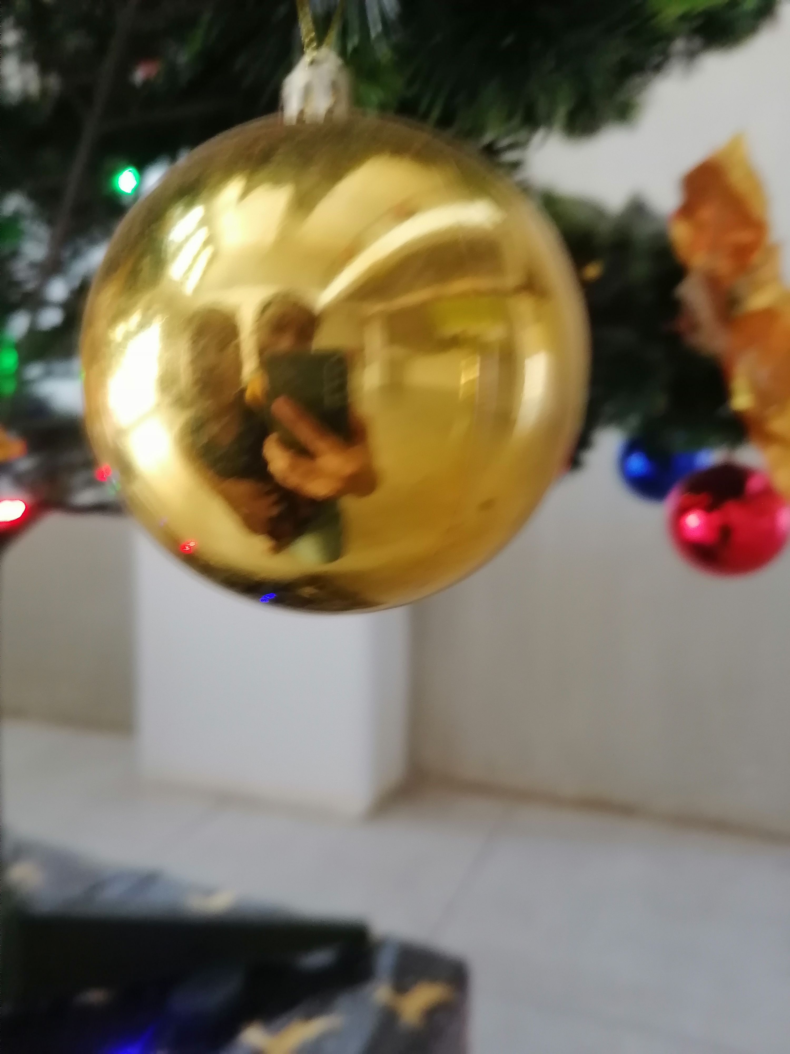 I showed him the Christmas tree and want me to go there always, I took a picture of him there and I took our selfie on the reflection of the Christmas ball.