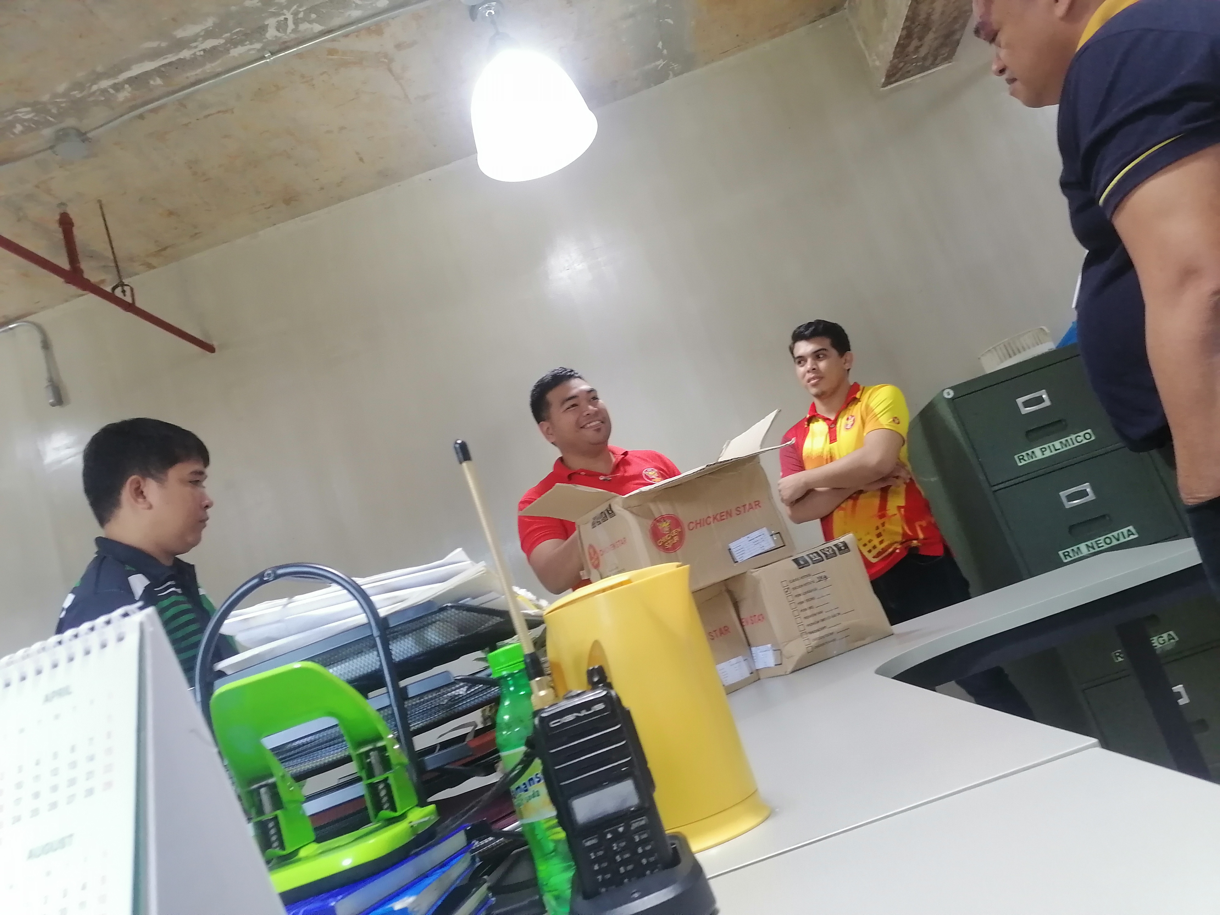 Then a moment later, these men arrived bringing 30 packs of hotdogs as a pre-Christmas giveaway to our company and we all brought one at home.