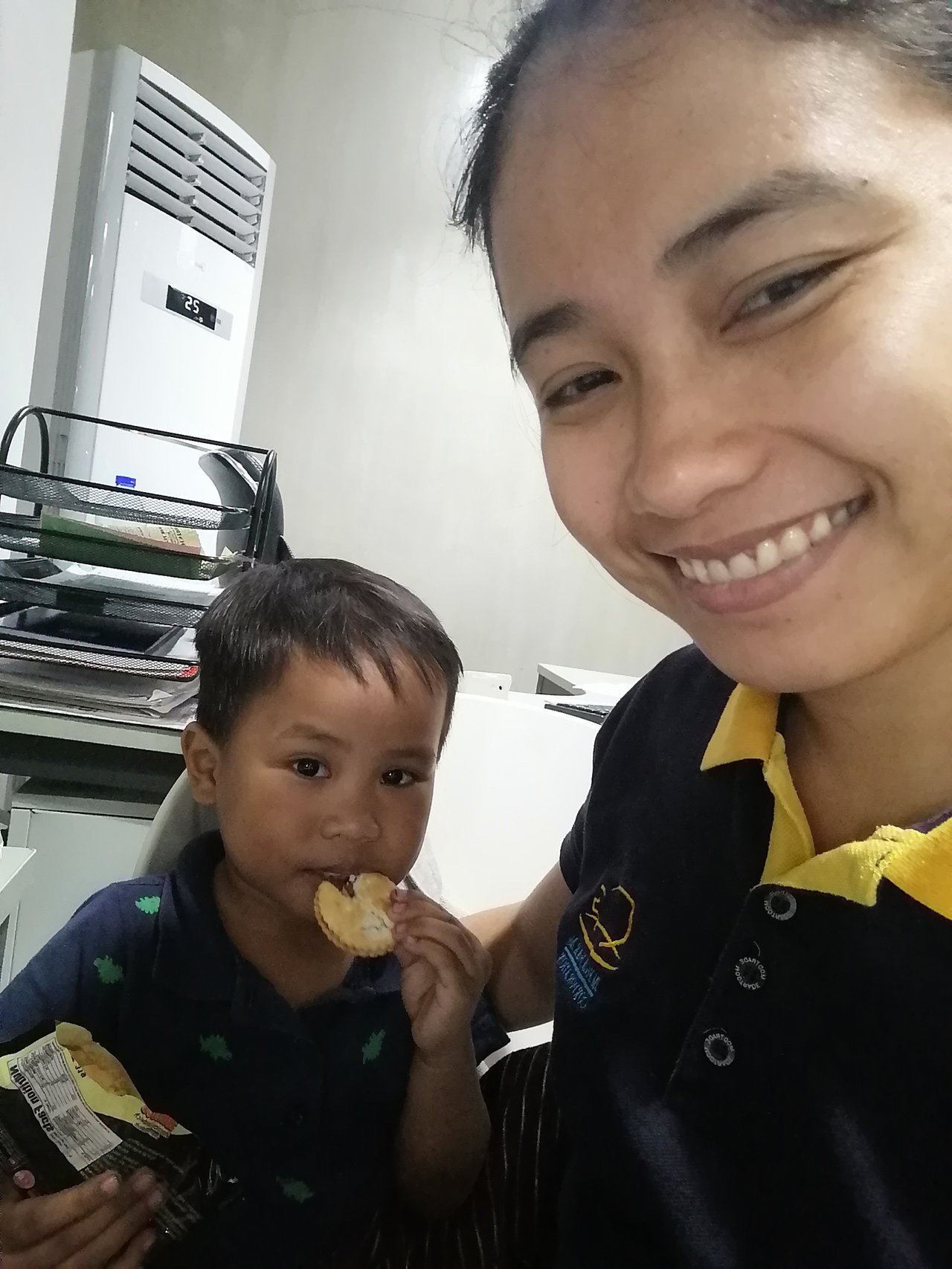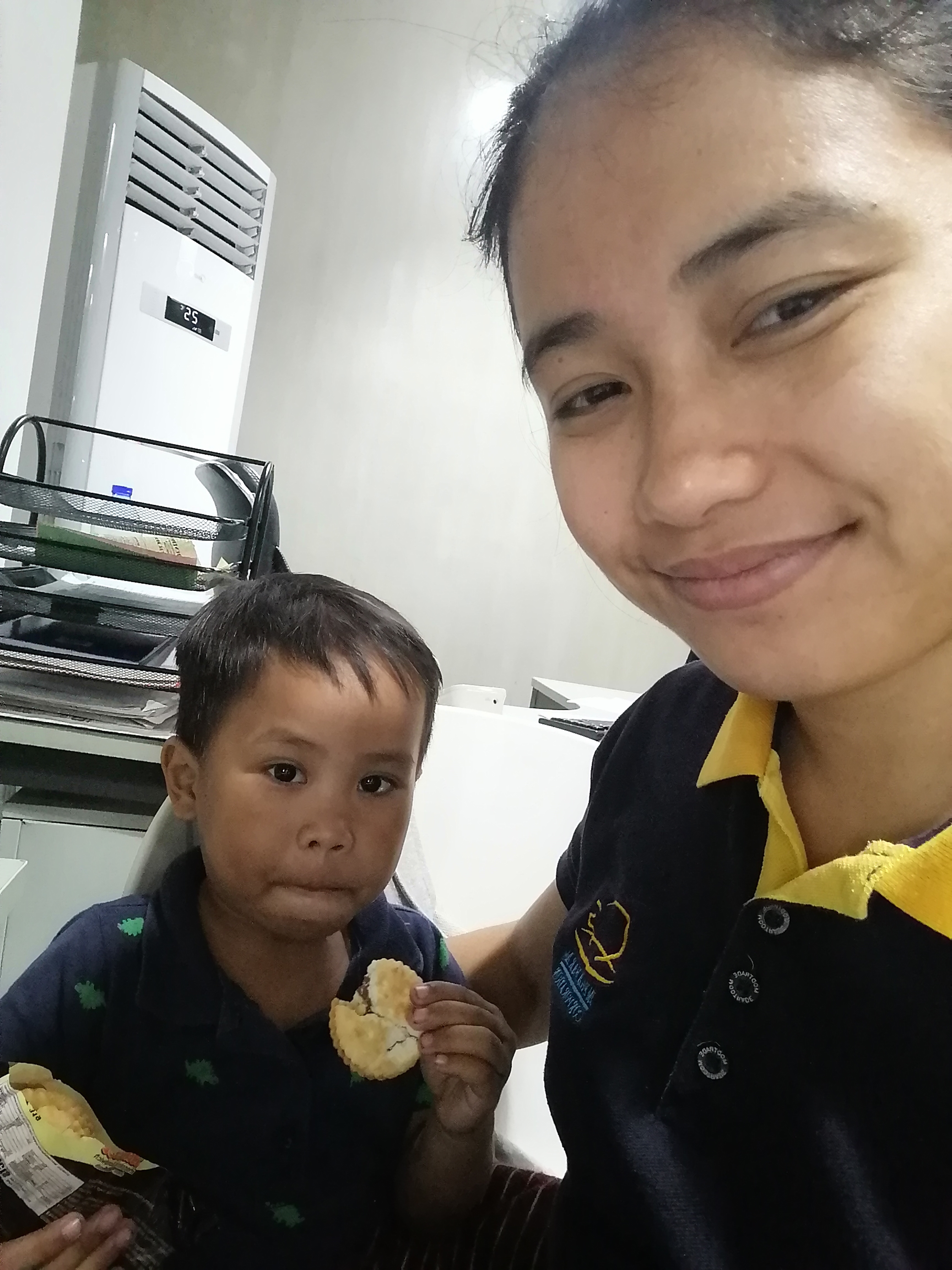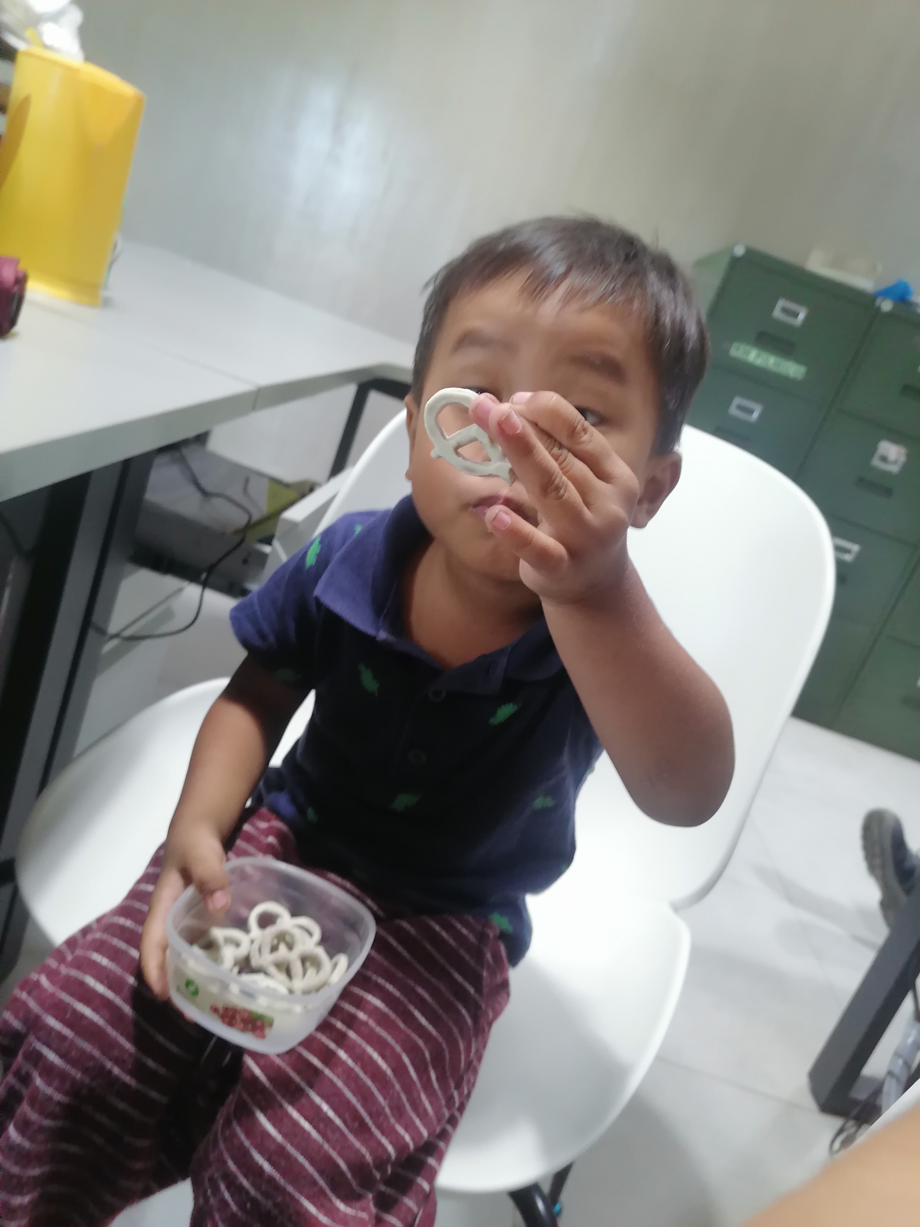 But before he slept, Karen took her up to their office and Czak brought back a a lot of food. My co-workers were fond of him that is why they gave him food, in fact he got a huge bag of assorted food when we went back to my office table and there, he was non-stop eating ; sometimes trying one food and opening another when he don't like it that much.