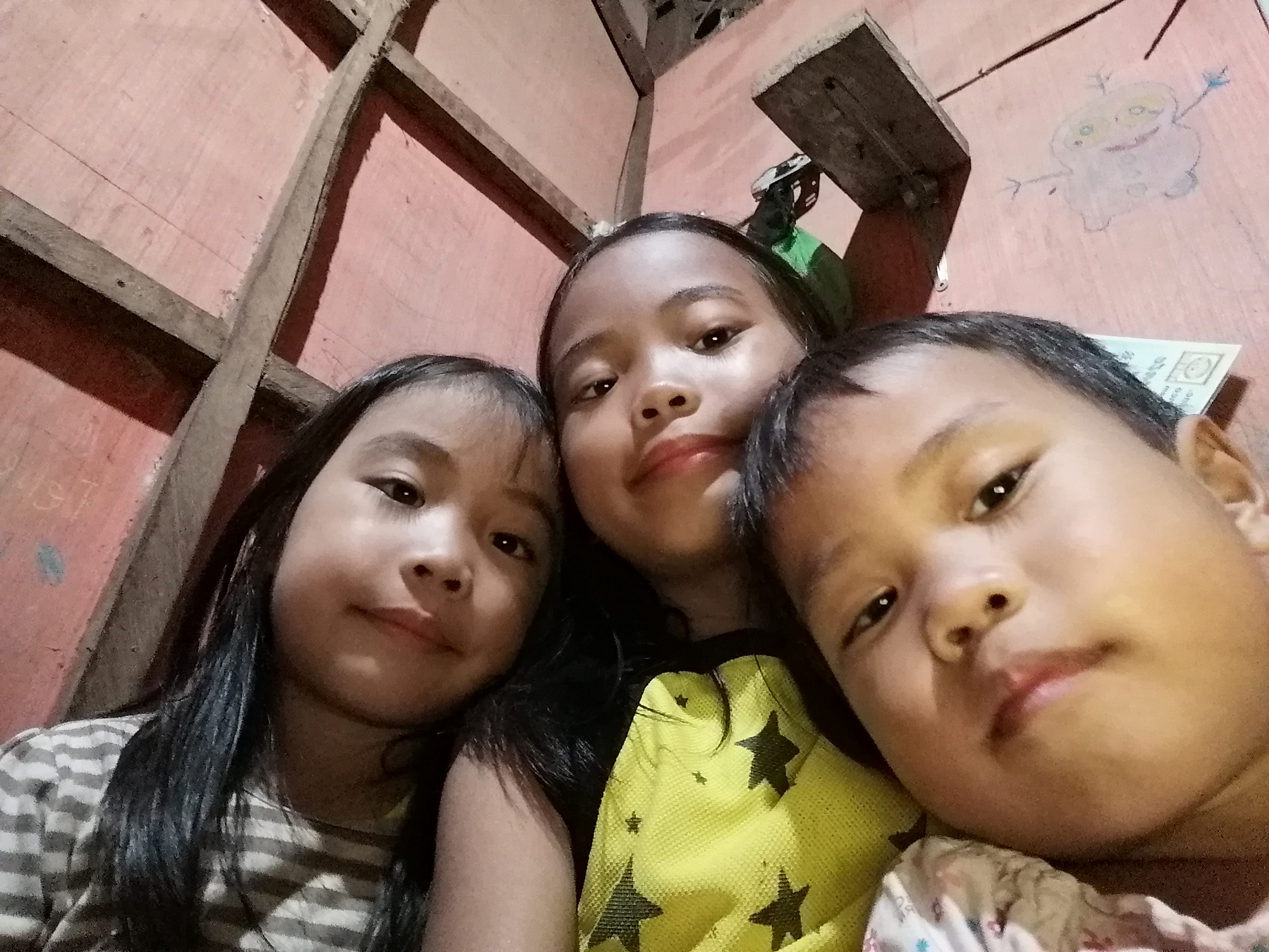And here are my kids, taking a group together. The work took us until past nine in the evening and as soon as we finished with the fish, I set my kids to sleep.