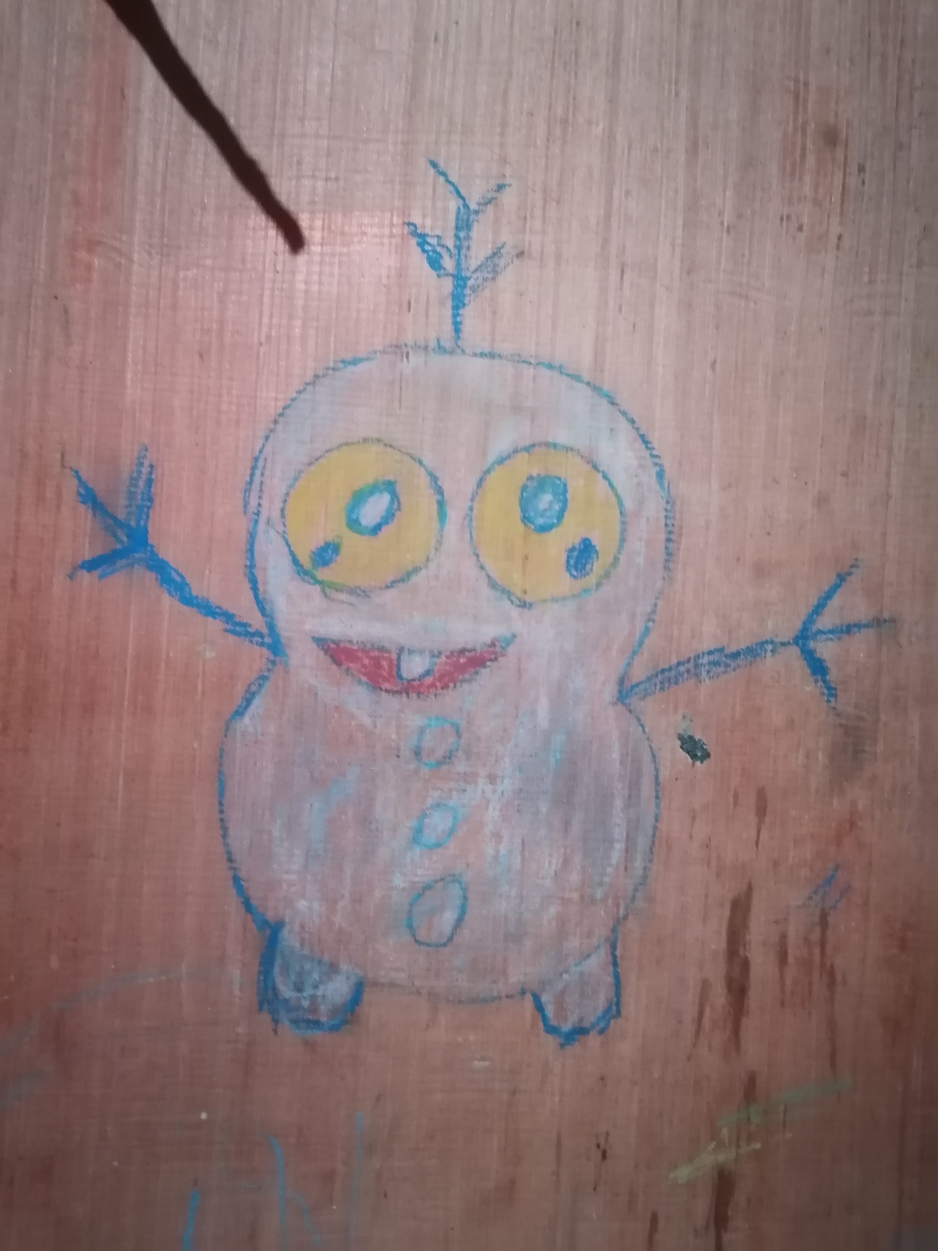 While doing our thing, the kids are having fun inside, my eldest daughter drew a snowman on the wall, but to me, it looks like a minion snowman, haha.