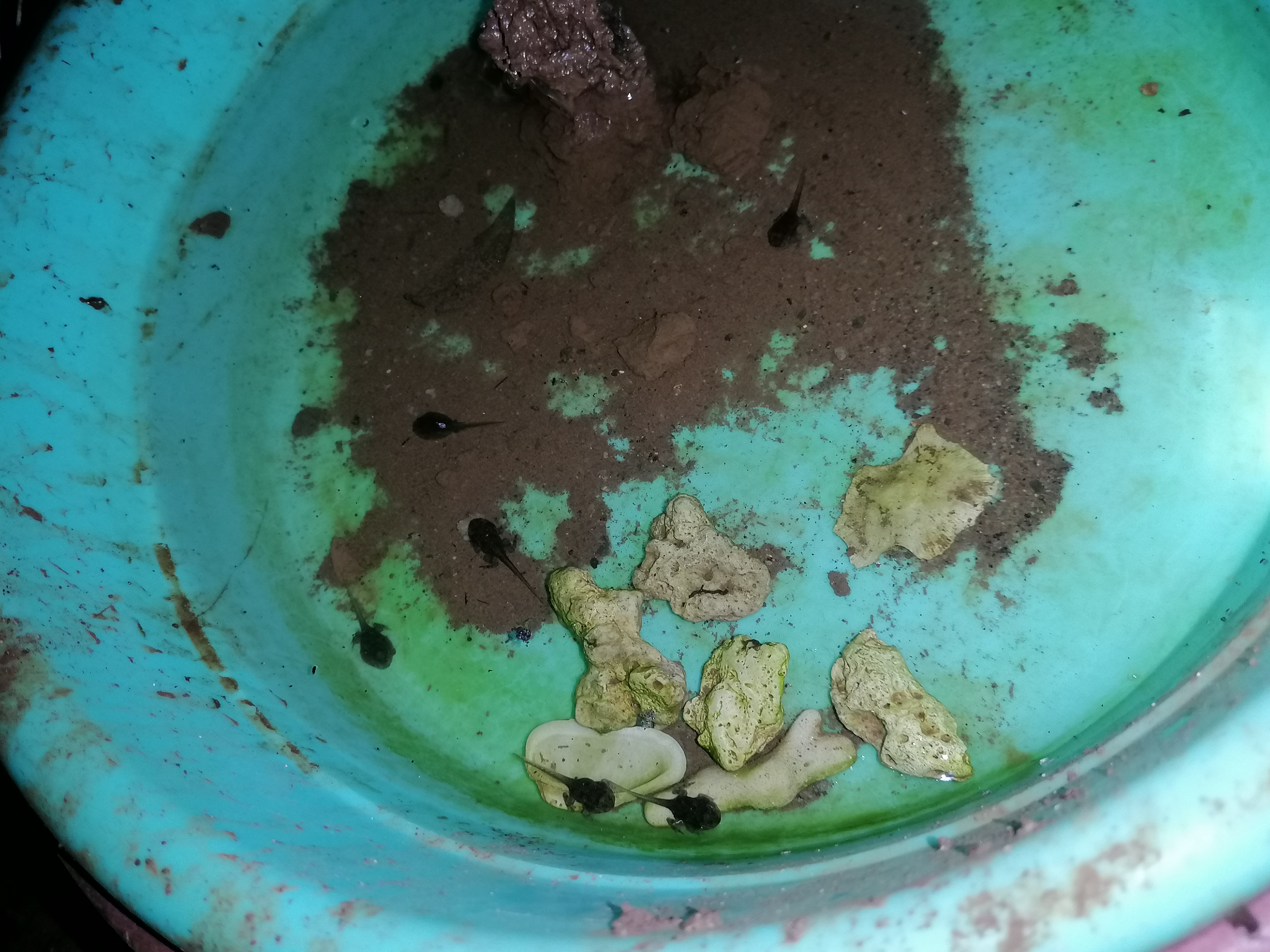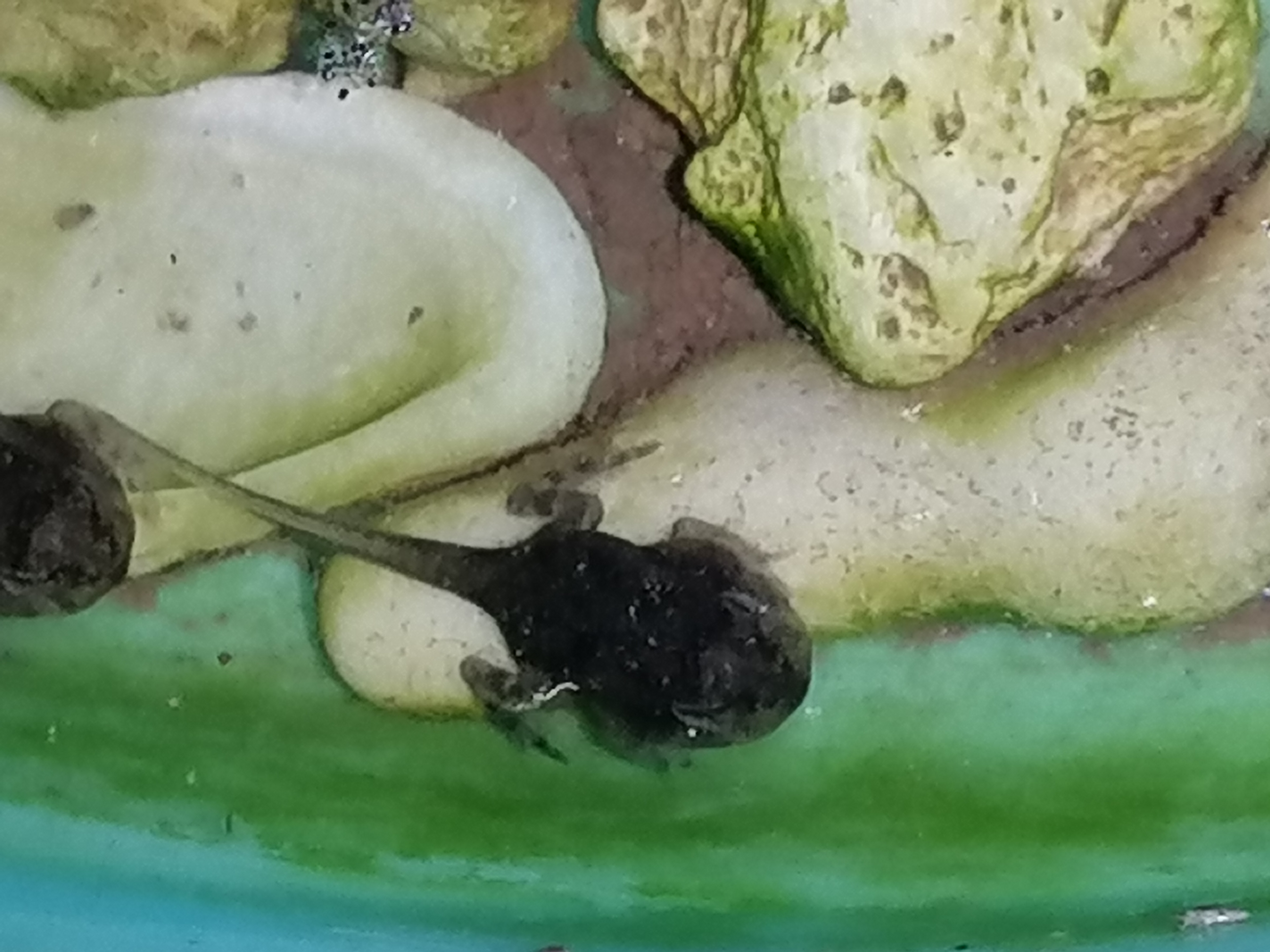 My husband had clever idea; to get rid of the kids disturbing the pace out fish had, he brought in some tadpoles for them to care for. It had been a few days and the tiny creatures grew limbs and they are actually looking like frogs now.