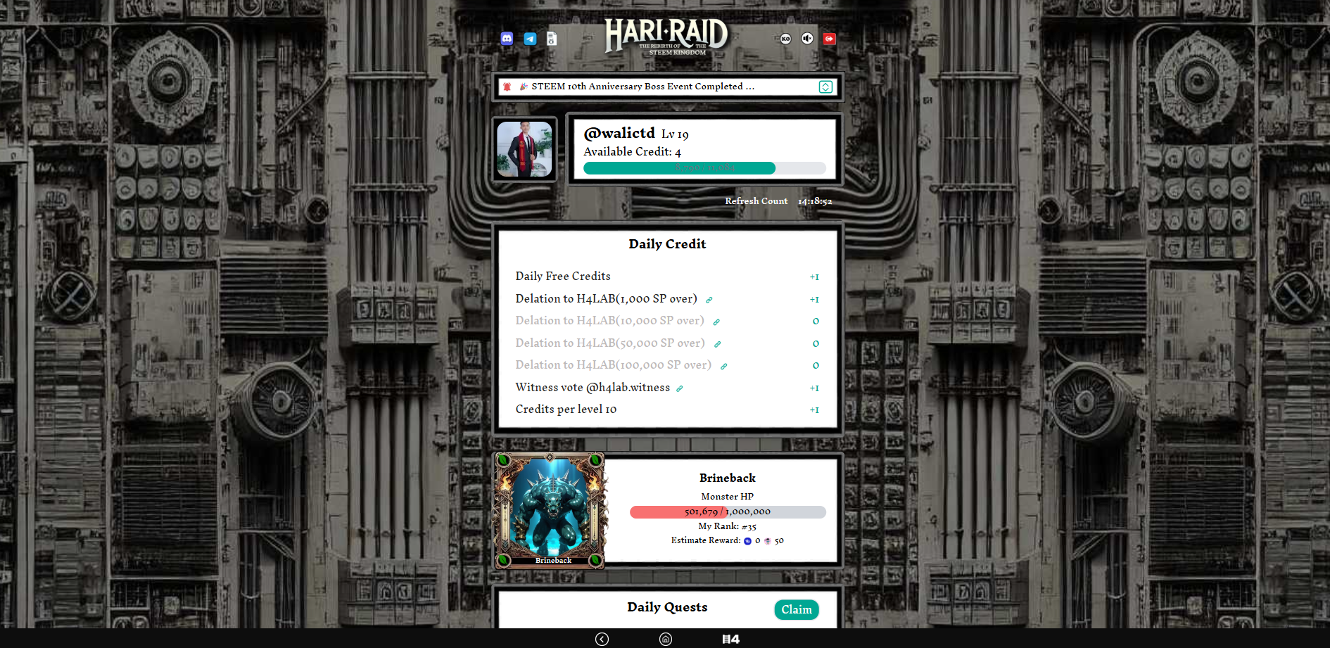 Teman-teman semua akhir-akhir ini saya selalu aktif dalam bermain game ini hampir setiap hari tidak pernah saya lupakan termasuk pada hari ini yaitu hari Jumat 17 April 2026. Saat login pertama kali hari ini di menu dashboard dapat saya lihat bahwa rank Saya turun daripada hari-hari sebelumnya yang mana pada hari ini di sana menampilkan bahwa rank sebelum saya bermain 35 dan total kredit yang dapat saya putarkan kartu Summon sebanyak 4 sementara level masih di level 19. Selain aring dan level saya mendapatkan 10 poin yang dapat saya klaim langsung. Selanjutnya barulah sayang menuju menu play untuk memainkan tempat kartu dengan kredit yang tersedia secara gratis setiap harinya.