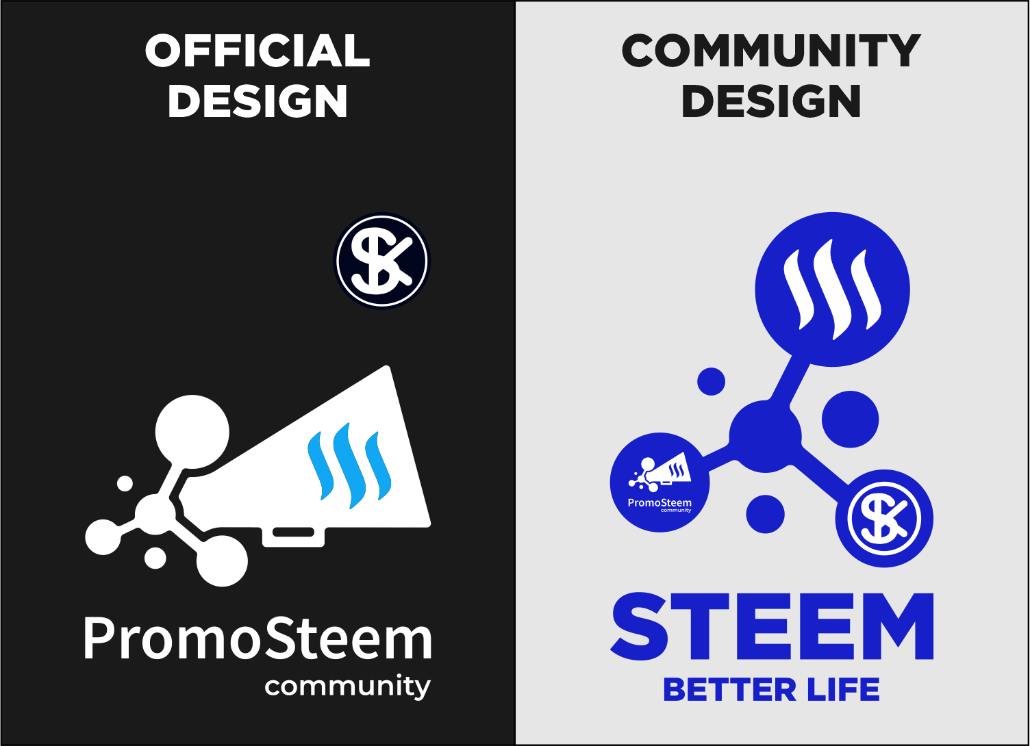 Official design means that only PromoSteem Team & Promoter is planned to use it and Community design is the one that will be used by the entire community.