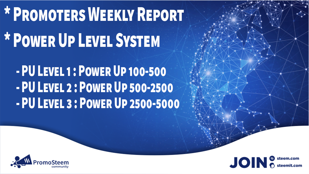 Reports from the promoters will be published every Saturday on each promoter's account about the development of users from their country, and in this report, the users' commitment to power ups and assessing how users carry out promosteem activities will also be displayed.