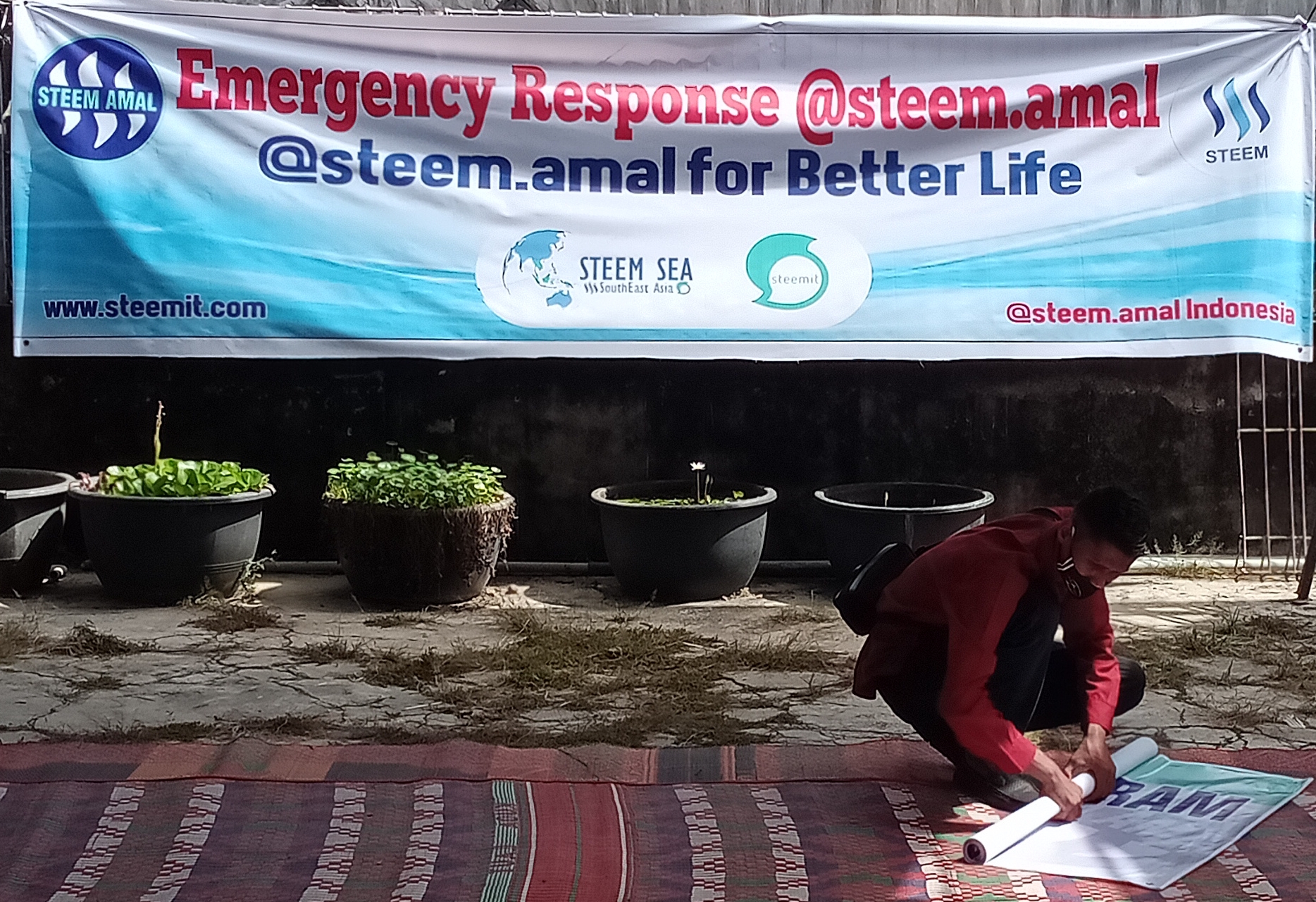 We from the steem.sea community provide assistance to fire victims through Steem.amal, this is a very efficient first step to doing steemit promos while doing charity, other people are very receptive so they quickly respond to promos through banners, very practical and easy to introduce themselves to them and who we are and what do we mean, their place is very easy to recognize, with a banner that is we put an appendage and a steemit logo in it.