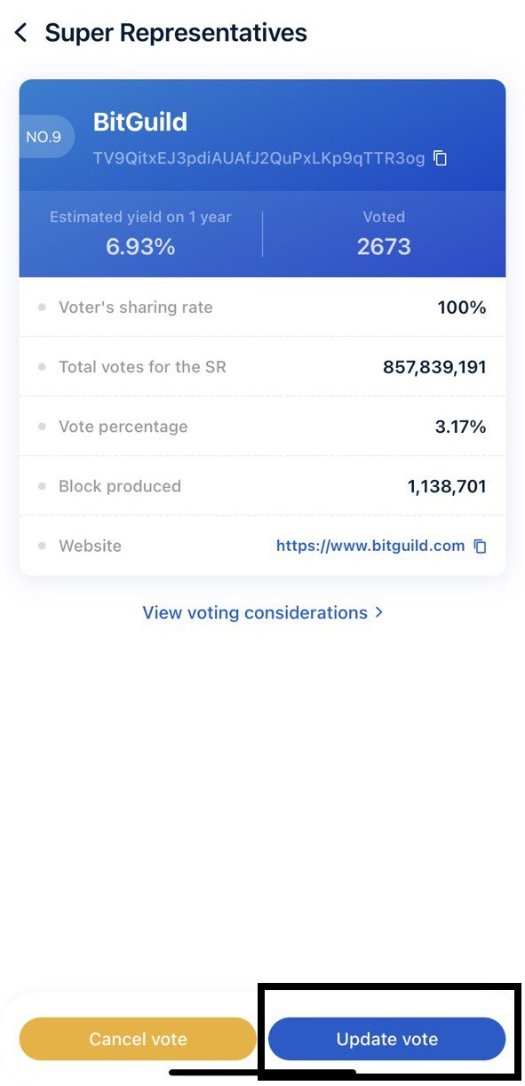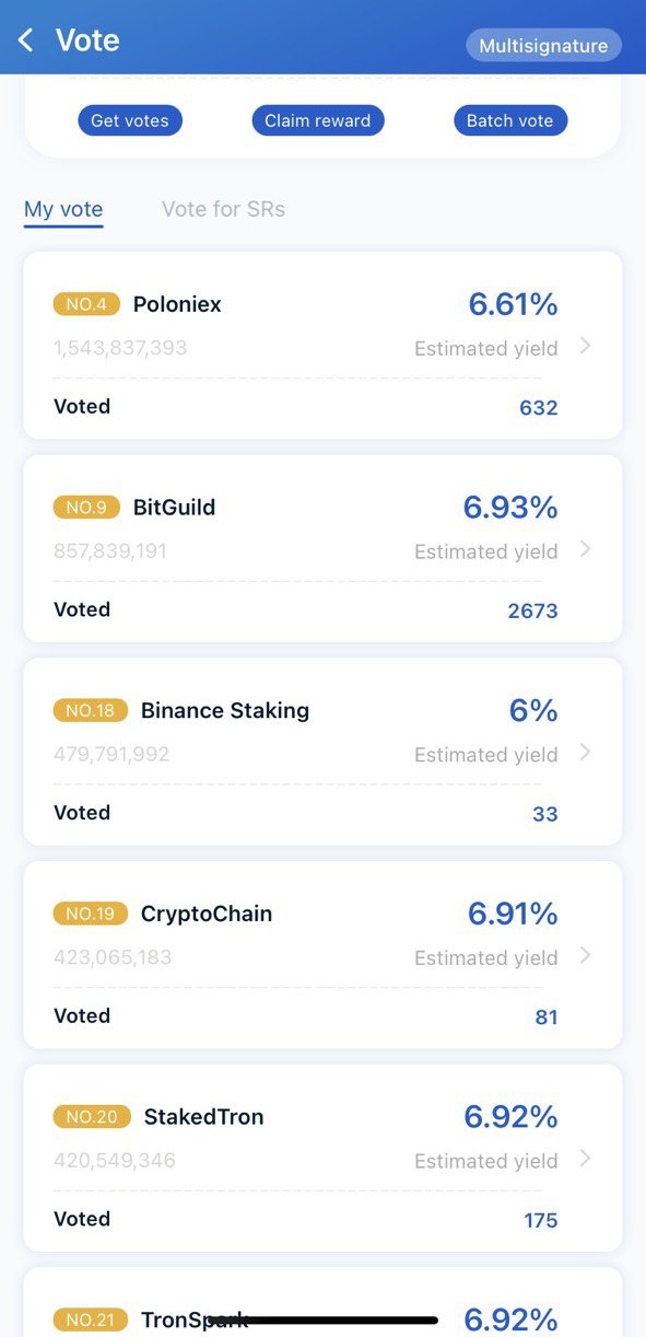 - Once freezing is that we come back to the main interface and proceed to the vote option. Here you will see the amount you froze available for voting, now you see lot's of options with whom you can lend your tron for voting, i prefer to work with those who have good returns for you.