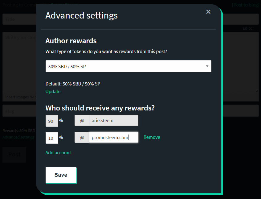 We will also get a 10% donation which comes from posting our payout Promoter and Team. Anyone can donate their Post Payout to an @promosteem.com account by setting advanced settings and using #promosteem10pp in the third tag.