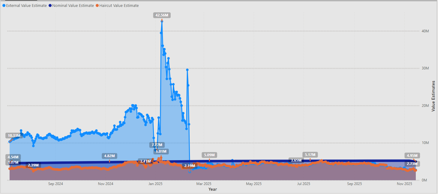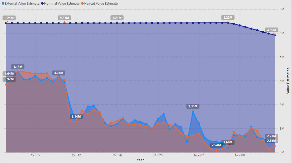 - Not captured here, but the haircut price has dropped from about $0.153 to $0.149627.