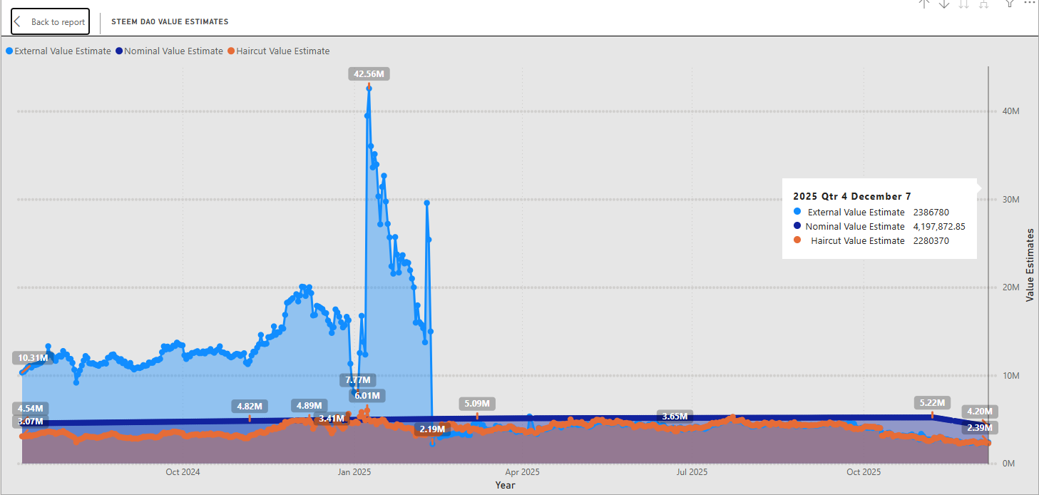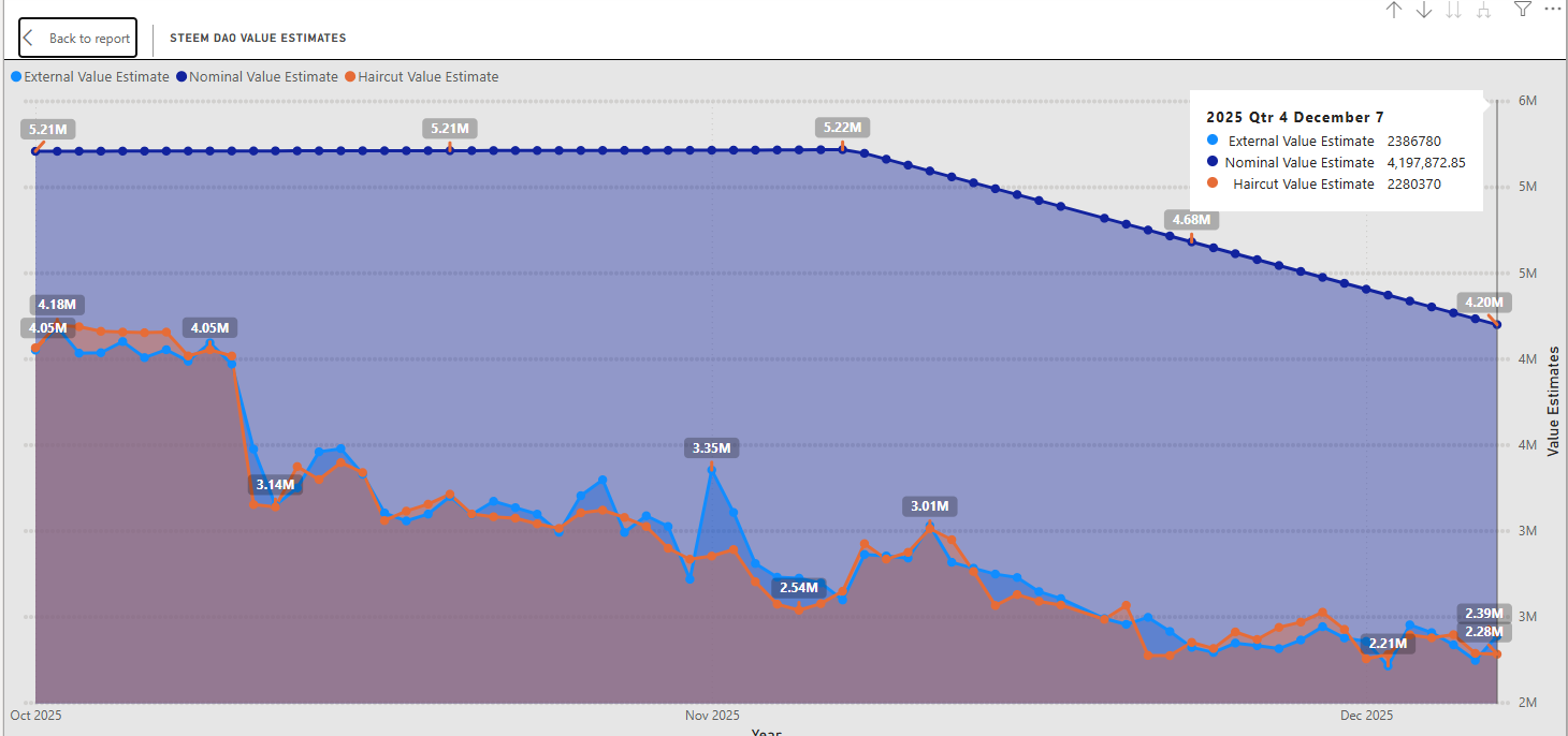 - IMO, the decreasing size of the orange and blue areas comes from the broader market downturn. Specifically, it's because the price of STEEM has declined (relatively faster than the haircut price).