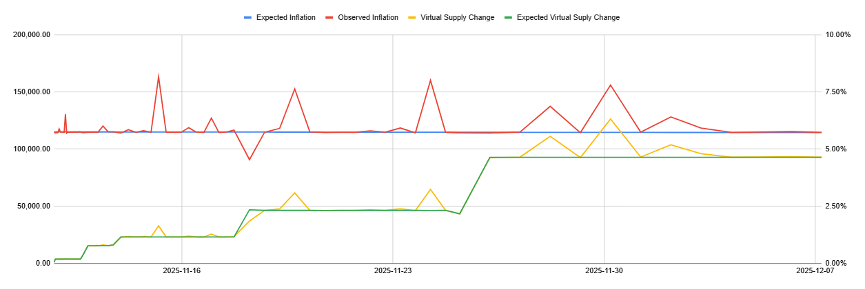 - Observed and expected inflation are continuing to track together. I assume that the little bumps we see in observed inflation have to do with SBD conversion activity, but I haven't verified that.