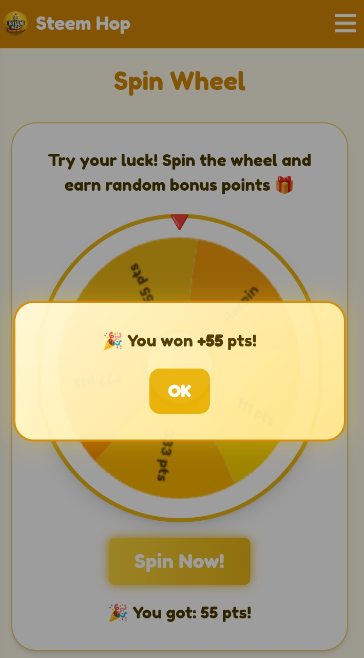 This time I spun the pin and scored 55 points. These points encourage me to play games and I love collecting them.