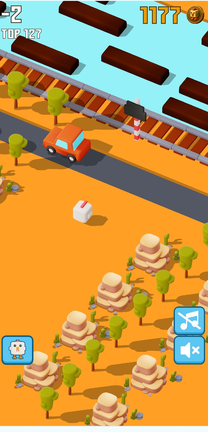 Then I returned to the main game and started playing the game. I really like the main theme of the games here. Here, a little chicken keeps moving forward, overcoming various obstacles and dangers. You have to be a little careful here because if you are distracted, you will end up getting run over by a car or crushed under a train. Besides, there is a possibility of drowning, so I try my best to keep an eye on everything and move forward. I played the game for quite some time and scored fairly well.
