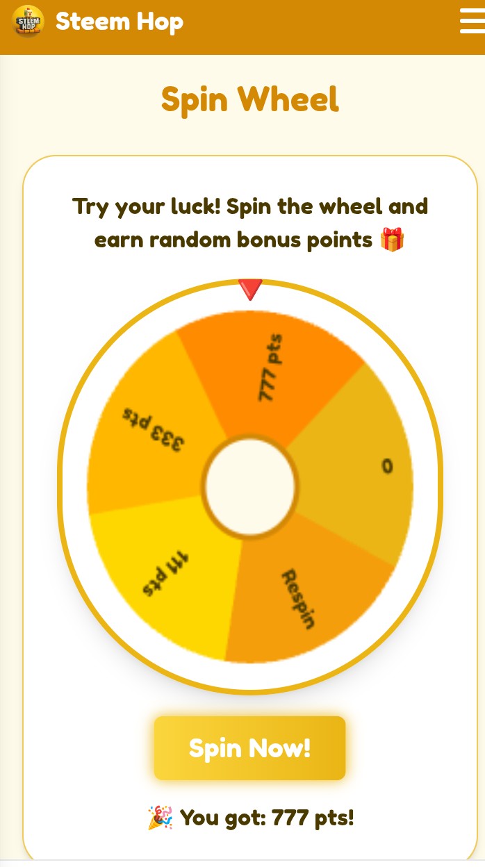 Then I clicked on the option called Spin Wheel and spun the wheel and achieved 777 points.