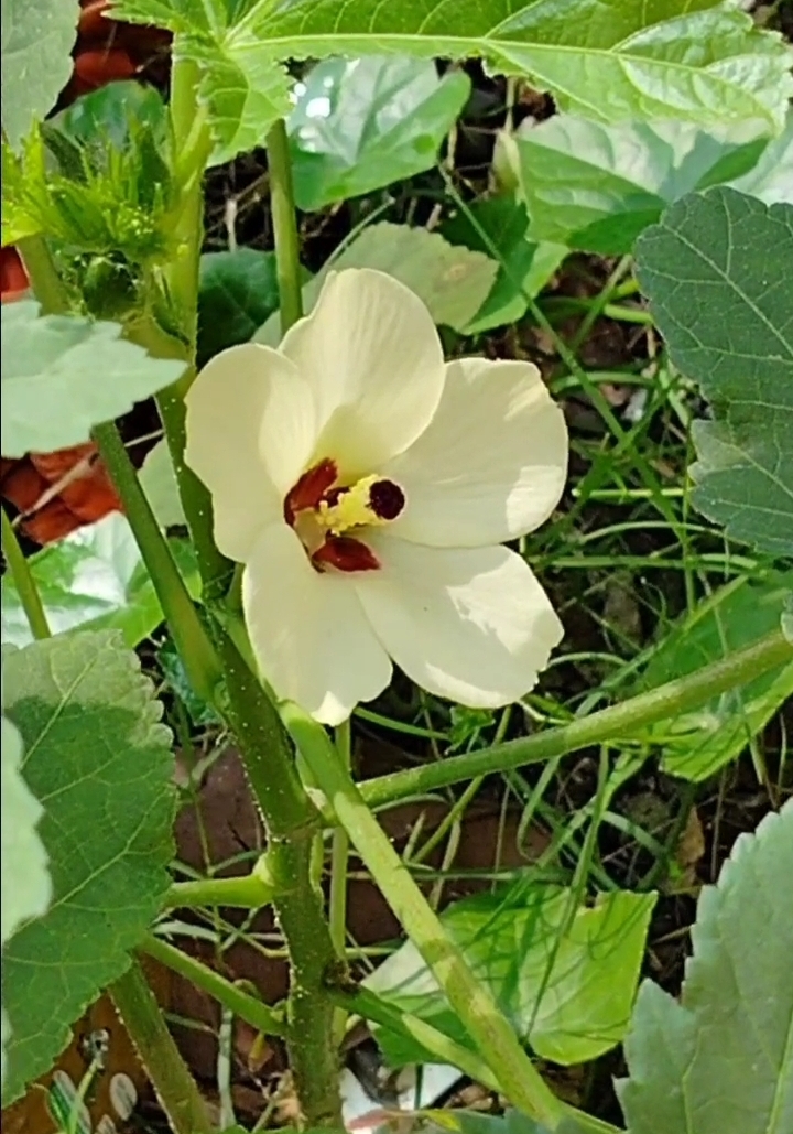 Dear friends, welcome to my event today. Today I will try to highlight the beauty of vegetable flowers. I sometimes try to take my daughter for a walk in the afternoon. Today I saw several fenugreek trees behind my house. Later, I saw that the fenugreek trees had beautiful flowers. It looks much more attractive. In fact, eating okra is also very fun. I especially like to eat it fried. Be sure to comment and let us know how you like to eat. There is a video link below.