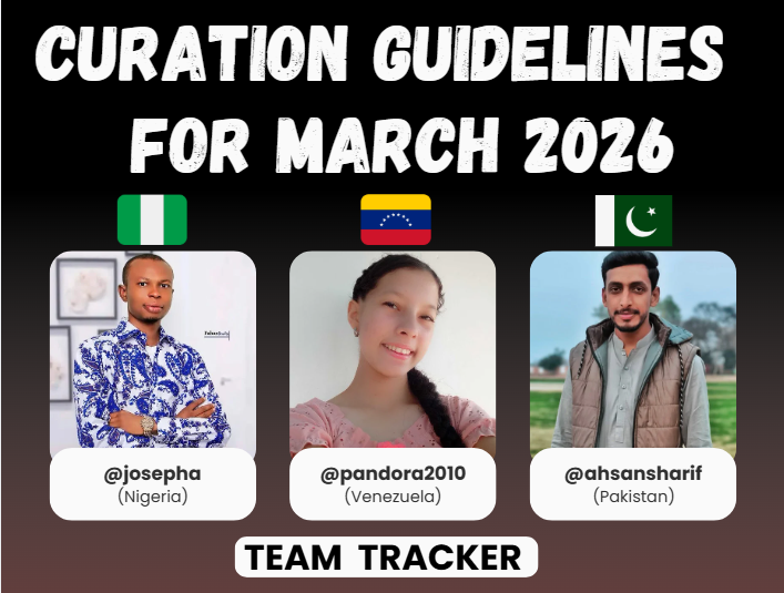 Finally, we will select one post each day to nominate for inclusion in the weekly curation report. The post must be of quality and follow all the rules. We look forward to your quality content in March. Best of luck to you all.