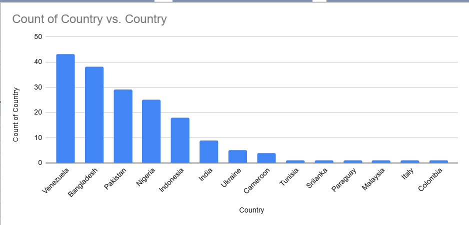 We have targeted 14 countries in our fourth week, with Venezuela in first place, Bangladesh in second, and Pakistan in third, where the most curation has occurred. These are very active countries.