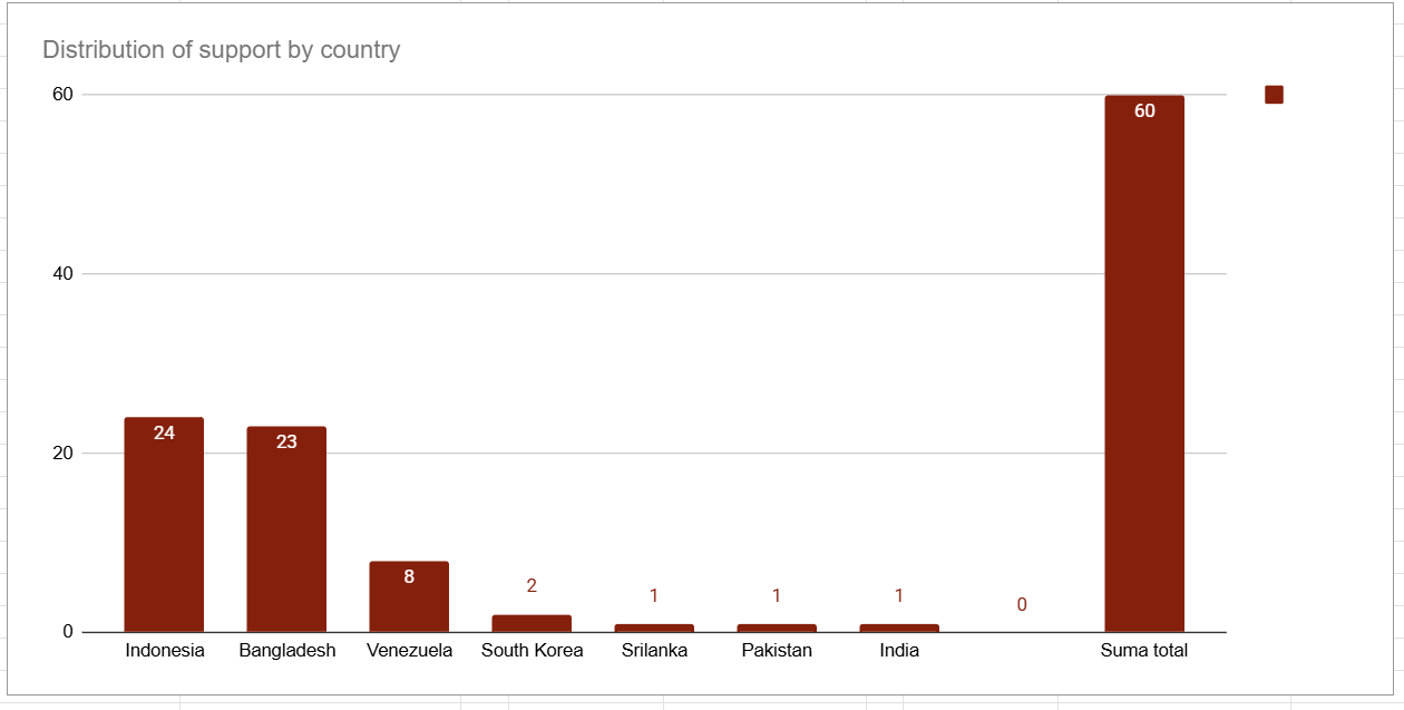 We could curate posts across 7 countries covering different continents. There are two countries with double-digit posts, where Bangladesh, Indonesia, and Venezuela are in the top three.