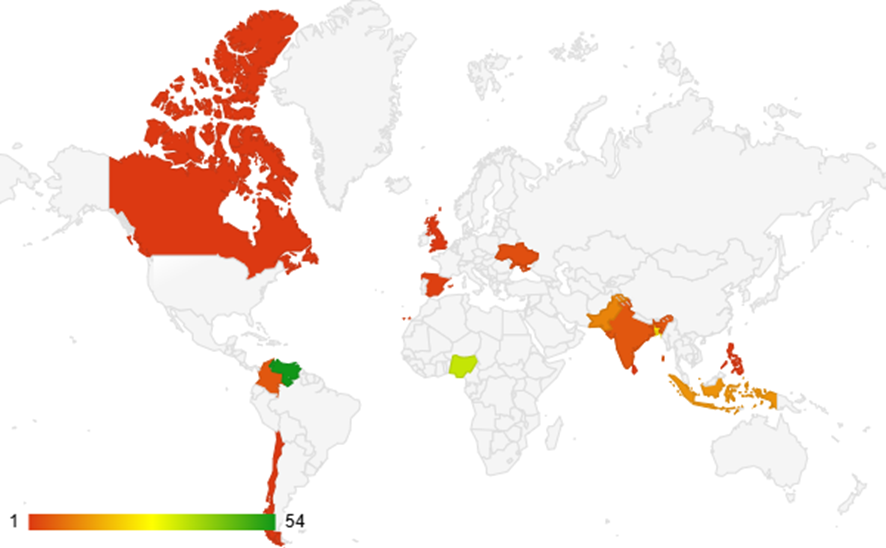 The supported posts are distributed across 14 countries, with Venezuela, Nigeria, and Bangladesh leading the week.